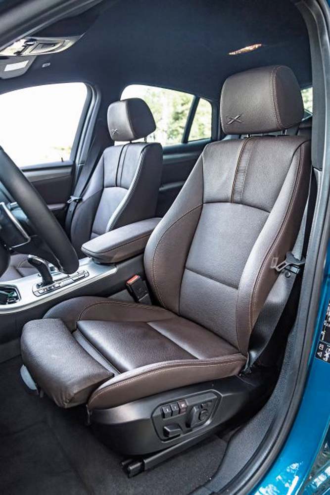 Poți să îți comanzi șase culori pentru centurile de siguranță și vreo 20 de modele de jante. La BMW se simte vârsta lui X4, al cărui interior este derivat din fostul X3. Asamblarea este ireproșabilă dar unele materiale nu sunt la fel de fine ca la rivali și lipsește acel tușeu sportiv tipic unor modele M. Însă BMW dispune de cea mai bună ergonomie, sistemul multimedia iDrive updatat cu ultimul soft de la Seria 5 și 7 având cea mai bună structurare a meniurilor și fiind și cel mai ușor de utilizat. Dintre cele trei, Porsche merge pe stilul clasic, cu butoane pentru fiecare comandă, abordarea fiind total opusă conceptului Tesla la care butoanele fizice au fost reduse la minimum.