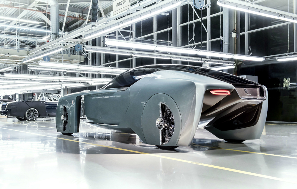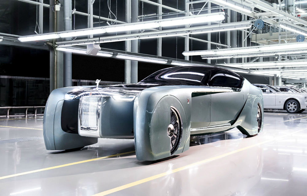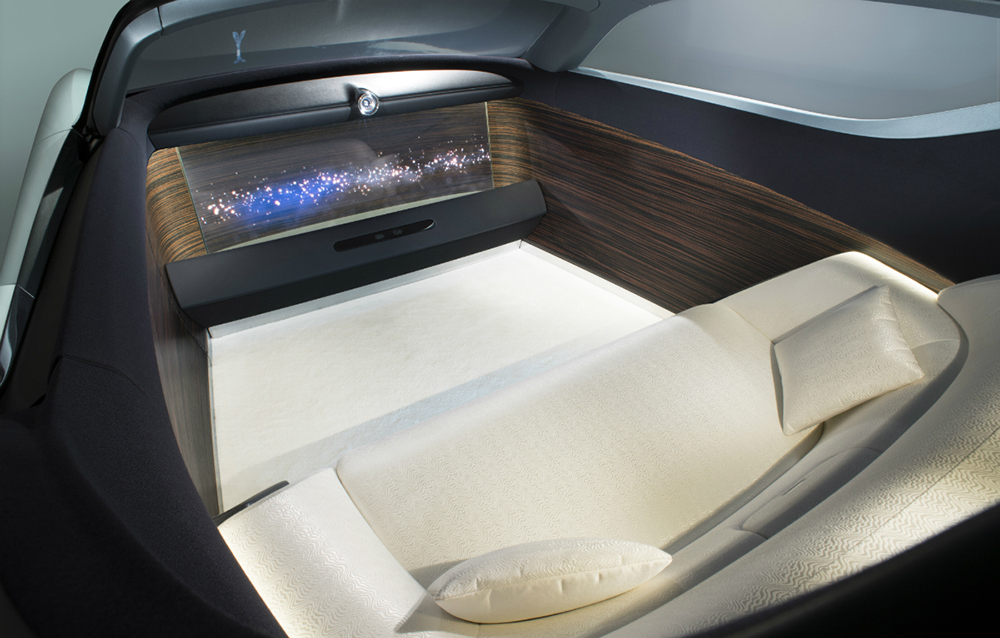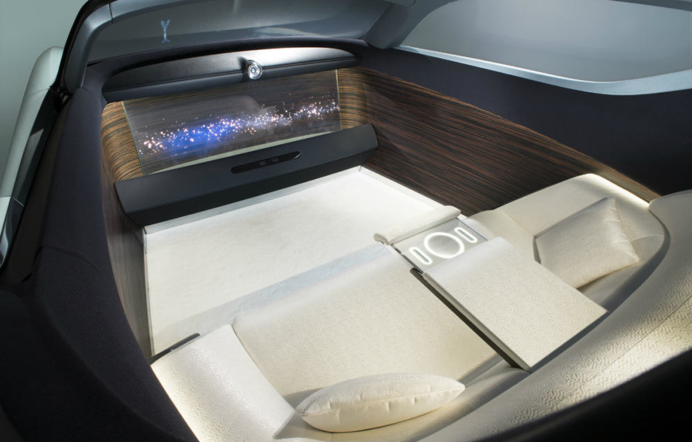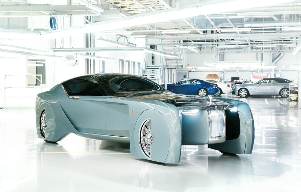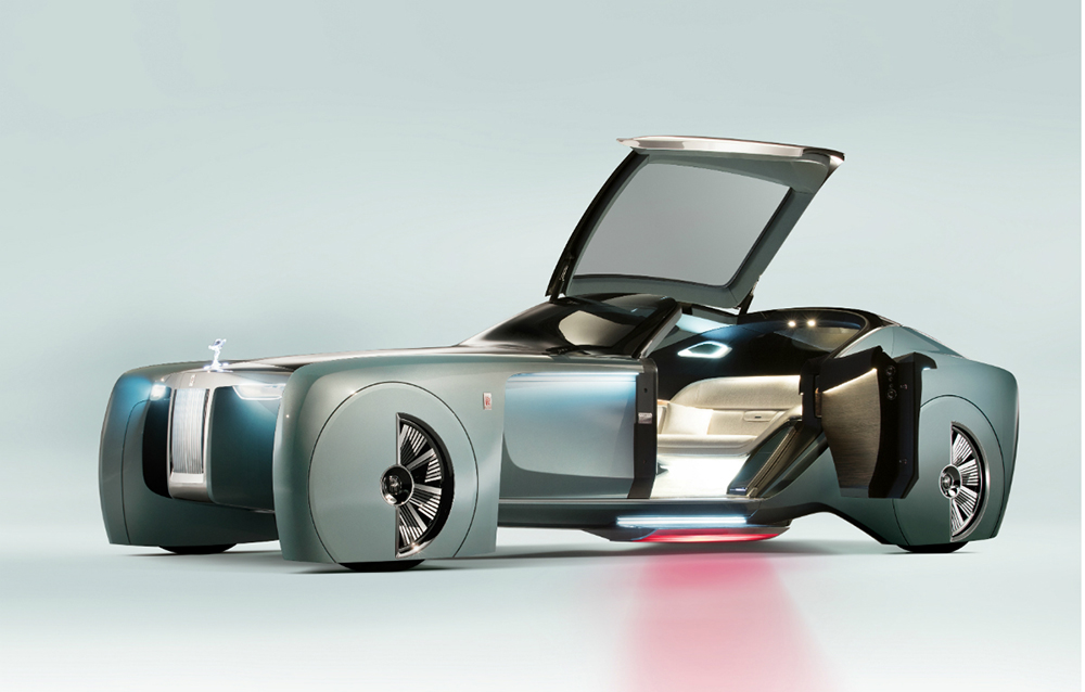 Conceptul Rolls-Royce Vision Next 100 este întruchiparea a tot ceea ce-și poate dori călătorul de la mașina de lux a viitorului. De ce nu și șoferul? Pentru că acesta nu mai există! Viitorul model este capabil să se ghideze singur prin trafic și să învețe toate preferințele proprietarului, grație interfeței sale inteligente. Aceasta este compusă dintr-un ecran OLED și o voce: cea a asistentei personale Eleanor. Ideea mașinii care se adaptează la preferințele posesorului nu este nouă, fiind prezentă și în cazul conceptului Opel GT.