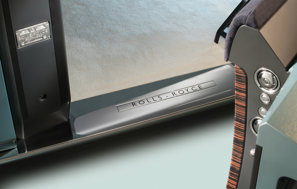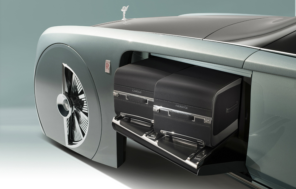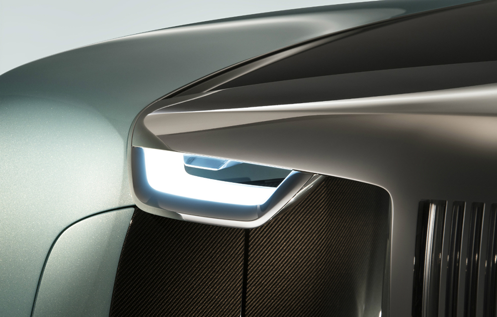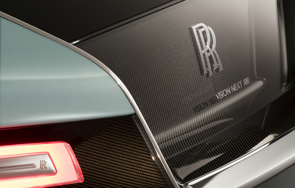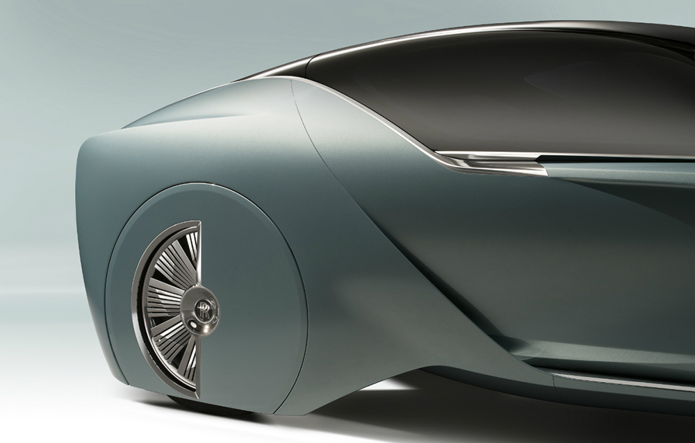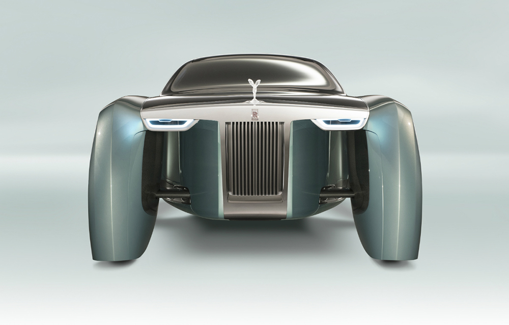 Surprinzătoarea poziție a portbagajului a fost facilitată de adoptarea propulsiei electrice, mai compactă și mult mai modulabilă decât tipicul motor V12. Iată, deci, că nici sun capotă nu mai regăsim elemente tipice ale modelelor actuale produse de britanici. Pe capotă, însă, statueta Spirit of Ecstasy, realizată din cristal modelat manual și iluminată din interior, rămâne suverană!