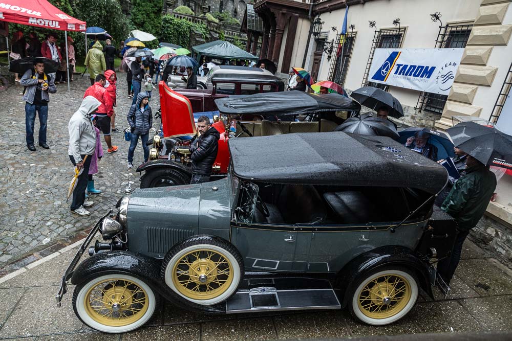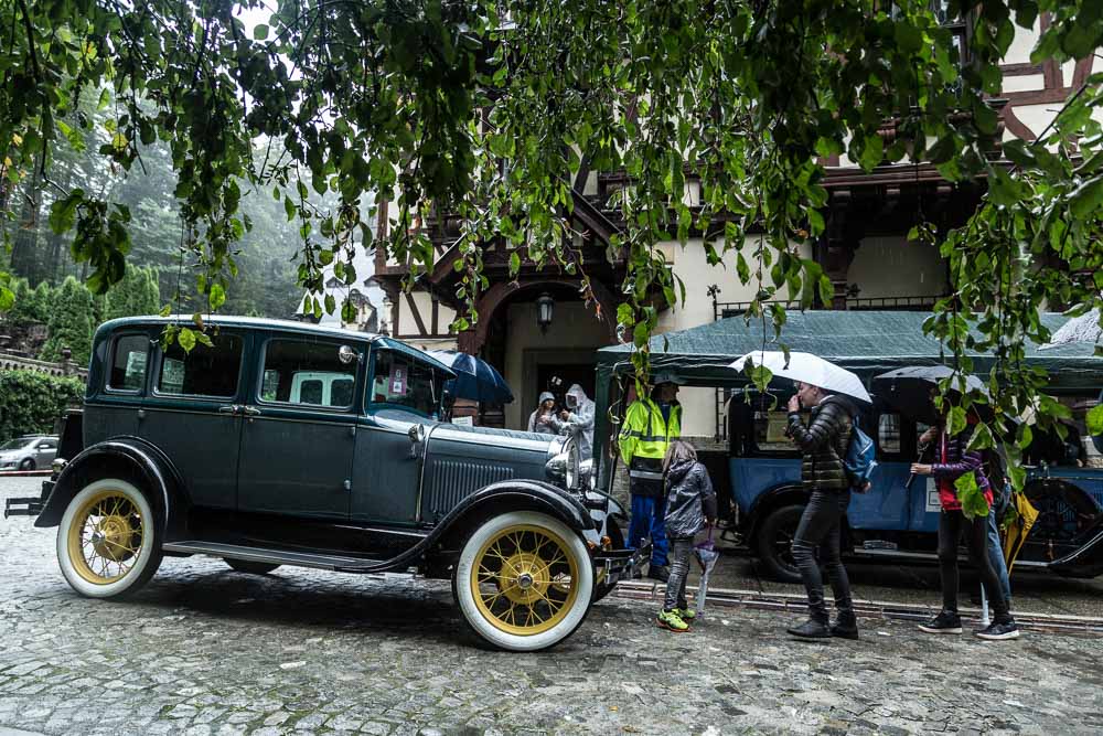 Cea de-a VIII-a ediție a Concursului de Eleganță Sinaia, în varianta sa modernă, și-a purtat pașii printre șiroaiele formate de ploaie și conaționalii care se sprijineau pe mașini pentru a-și face poze. Minoritari printre atâția străini veniți să viziteze castelul Peleș, câțiva dintre ai noștri au ținut să-și pună amprenta la propriu pe unele mașini participante.