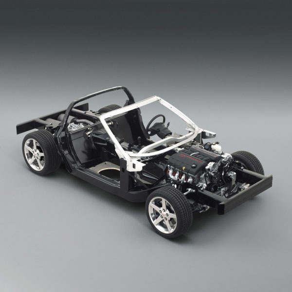 În premieră, modele Corvette diferite prezentau şasiuri diferite. Modelele performante C6 Z06 şi ZR1 aveau un şasiu unic, cu tub central din aluminiu, nu din oţel, ca cel montat pe alte modele. Acesta reprezenta o bază mai uşoară, cu un plafon cu schelet din magneziu şi suport pentru motor şi avea o greutate de doar 126,098 kg – cu 49% mai puţin decât cele 187,787 kg ale şasiului cu tub central din oţel. Şasiul din aluminiu a fost creat tot prin hidroformare, ca şi cadrul din oţel.