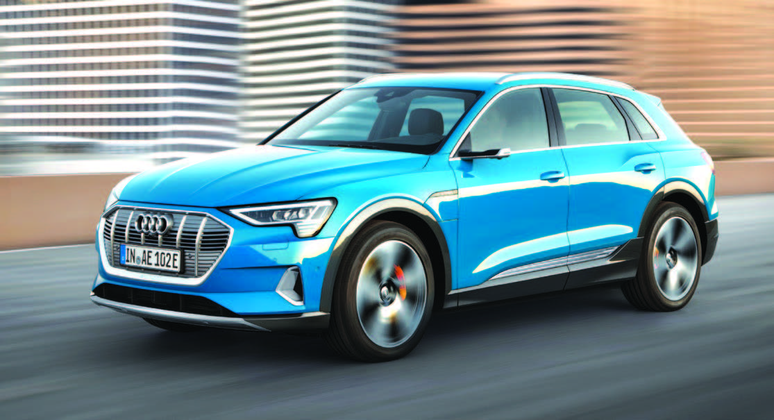 Noul Audi e-tron este primul model electric de serie de la Ingolstadt.. Cu proporții care îl poziționează între Q5 și Q7, electricul e-tron preia elementele de design familiare ale companiei germane. Crossover-ul electric primește opțional oglinzi exterioare virtuale, o premieră mondială la un vehicul de serie comercializat la nivel global. Două motoare electrice asincrone, cel aflat pe puntea din față de 135 kW și cel aflat pe puntea din spate de 140 kW, pun în mișcare cele 1.800 de kilograme ale mașinii.