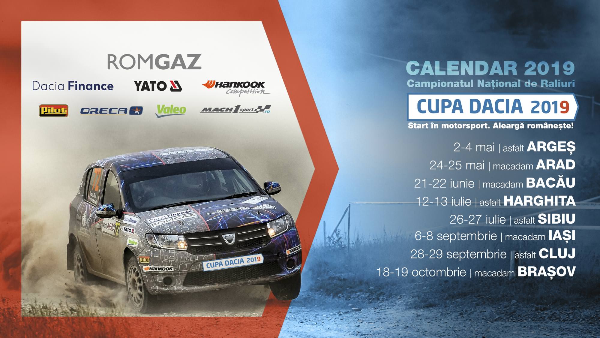 Cupa Dacia 2019 se pregătește de start. Pe grila de start se aliniază deja 16 echipaje. Premiile se ridică la 2000 de euro pentru primii cinci clasați la fiecare etapă. Douăsprezece Sandero și 4 Logan sunt deja înscrise în competiția monomarcă.