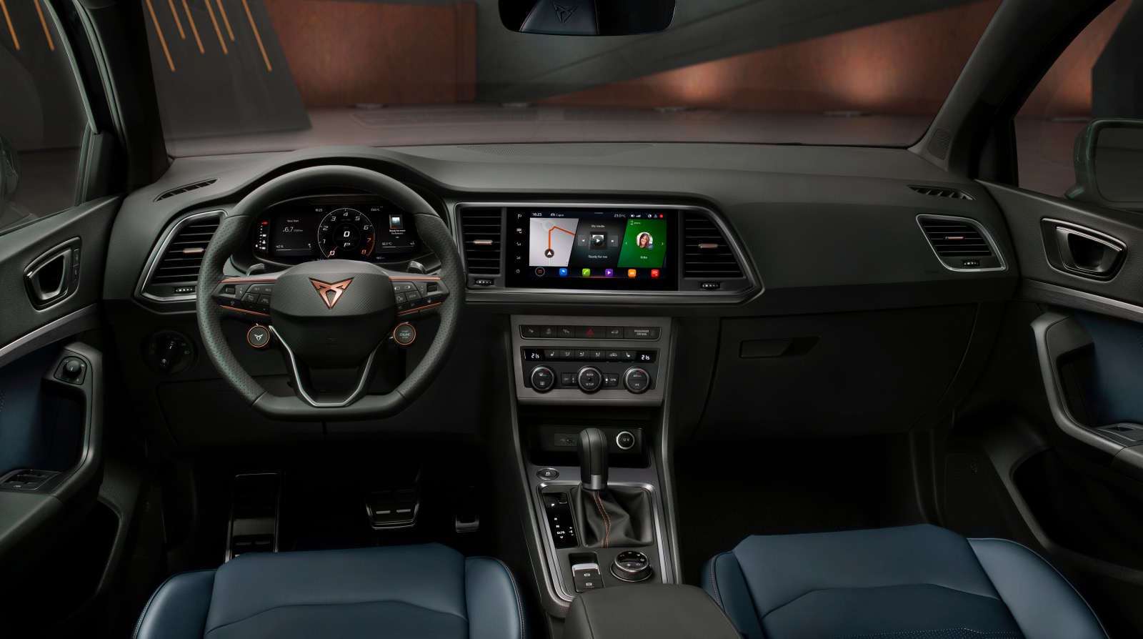 Update-ul tehnic al modelului Cupra Ateca este completat de un volan nou cu buton pentru pornirea motorului integrat. Scaunele sport sunt oferite standard. Modelul performant primește și un display central nou de 9.2 inch și un sistem de infortainment cu asistent virtual.