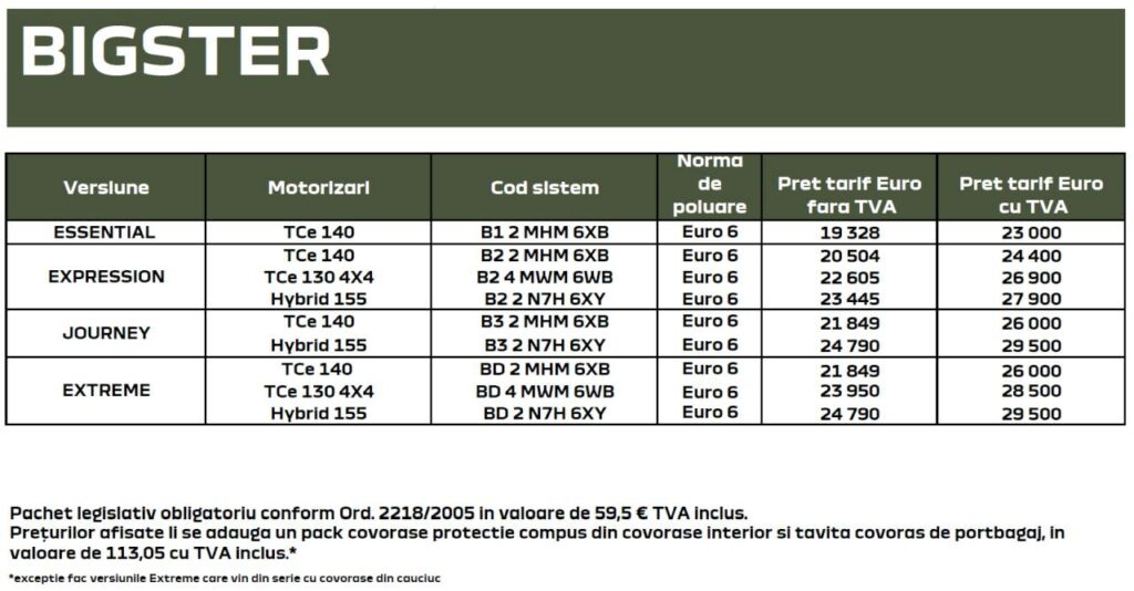 Dacia Bigster primul SUV de segment C al mărcii românești, parte a grupului Renault, pune accent pe confort și pe aspectul practic, propunând o gamă largă de echipamente.