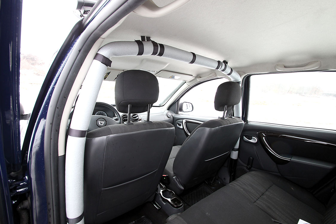Interiorul a fost gândit pentru a asigura protecţia pasagerilor la răsturnare, dar construcţia rollbar-ului cu elemente combinate interior-exterior aduce şi avantaje de ordin practic, cum ar fi faptul că poate oferi suportul ideal pentru un roof-rack uşor, sau pentru montarea unor lumini suplimentare. Rollbarul a fost proiectat în România de către Okura, dar a fost realizat în Portugalia de AFN.