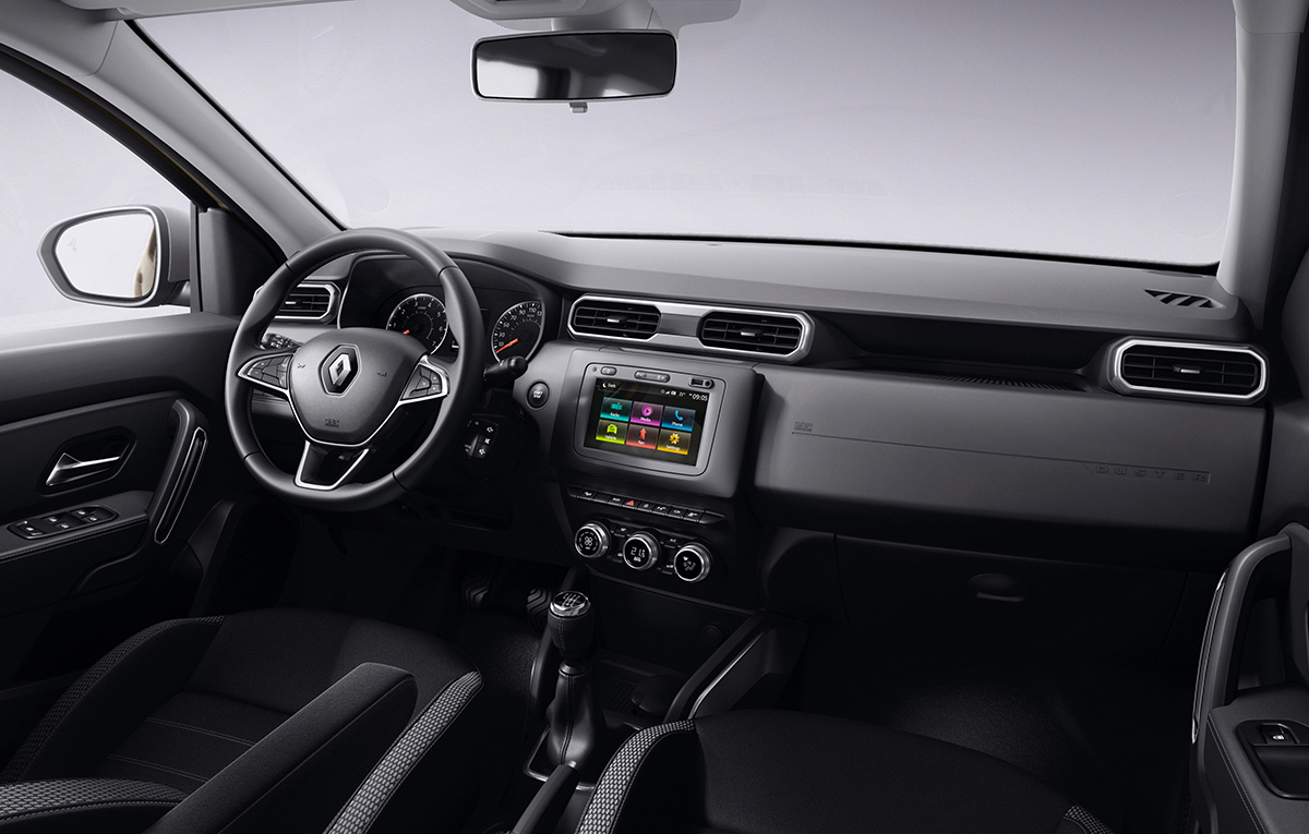 Și cabina SUV-ului Dacia este diferit de cel al SUV-ului Renault. Dacia are guri de ventilație rotunde, în timp ce acestea sunt octogonale la Renault. Volanul modelului Dacia este unul cu patru spițe, diferit față de ceea ce regăsim în cabina versiunii de la Renault, în timp ce ecranele tactile și butoanele sunt la fel.
