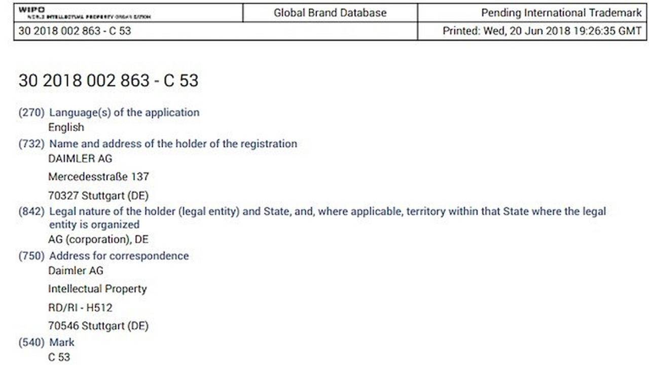 O denumire înregistrată la Organizația Mondială a Proprietății Intelectuale (OMPI) sugerează că un nou membru se va alătura celei mai populare familii de modele de la Mercedes, Clasa C, pentru a umple spațiul rămas între versiunea mai blândă C43 și ultra-performantul C63. C53 va călca pe urmele fraților mai mari, E53 și CLS53, prezentați în iarna trecută, la Salonul Auto de la Detroit.