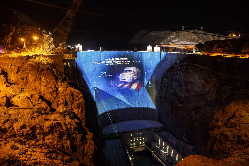 Daimler Trucks` “Infinite Inspiration” Technology Premiere took place on May 5th and 6th 2015 in Las Vegas. In a spectacular ceremony at Hoover Dam Daimler Trucks North America presented the Freightliner Inspiration Truck with Highway Pilot. It is the first autonomous driving truck licensed for public roads in Nevada. Am 05. und 06. Mai 2015 fand in Las Vegas die Daimler Trucks Technologiepremiere unter dem Motto „Infinite Inspiration“ statt. Im Zuge einer spektakulären Zeremonie auf der Hoover-Talsperre präsentierte Daimler Trucks North America den Freightliner Inspiration Truck mit Highway Pilot – den ersten autonom fahrenden Lkw mit Straßenzulassung in Nevada.