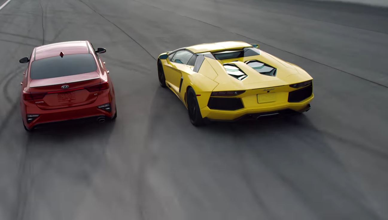 O rivalitate care nu a existat niciodată. O mașină de familie, de volum împotriva unui hypercar care mușcă din asfalt: Kia Forte vs Lamborghini Aventador. Dar au inventat-o americanii, care au dus ambele mașini pe circuit. Așa că iată cel mai trăsnit test comparativ!