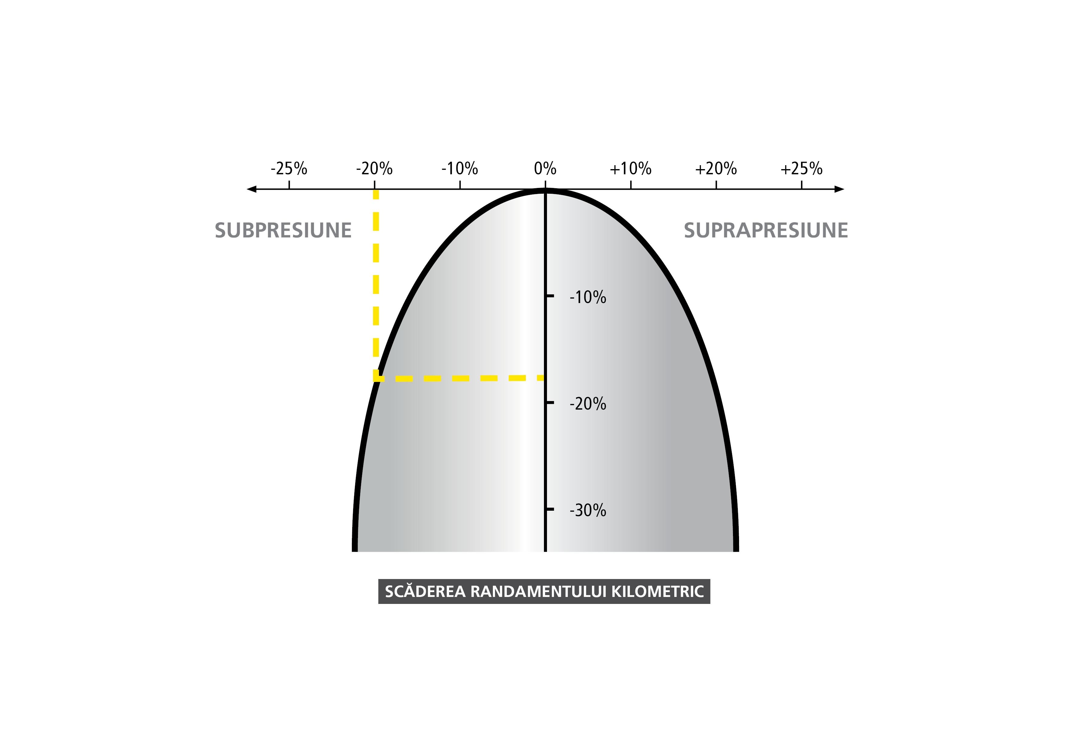 În ceea ce privește presiunea nominală de umflare cuprinsă între 6 și 9 bari, iată impactul subpresiunii și al suprapresiunii.