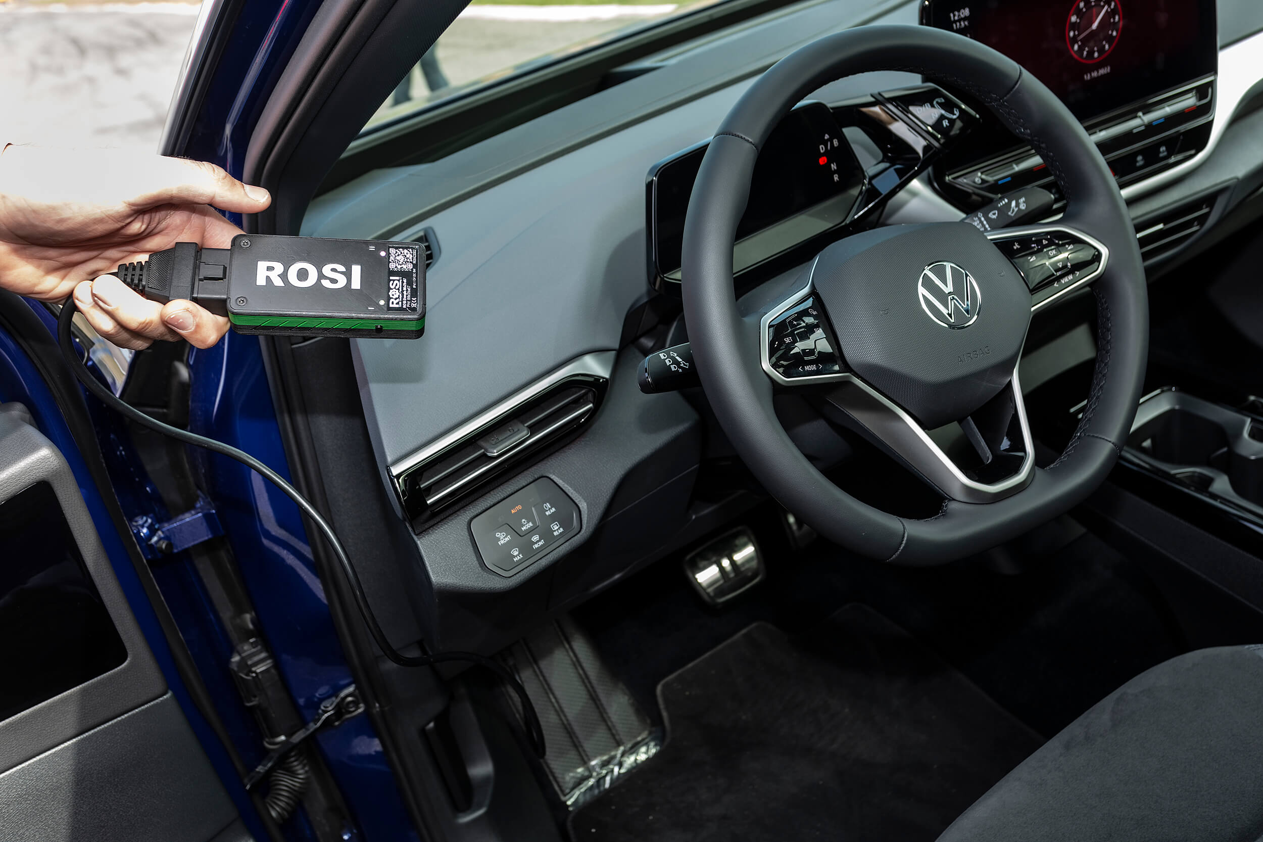 Simplu. Se conectează dispozitivul la mufa OBD a mașinii, apoi, wireless, la smartphone. Este compatibil și cu iPhone, și cu Android. Se introduc în aplicația de pe telefon câteva date (VIN-ul mașinii, modelul, data și nr. de înmatriculare și… gata. Aplicația citește principalii parametri ai bateriei și îi afișează pe ecran. Nu înțelegi mare lucru din ei (sunt tensiuni, temperaturi și alte astfel de caracteristici), dar reprezentantul DEKRA îți va explica despre ce e vorba. Apoi, urmează testul dinamic. Pe telefon apare un semafor, iar când se face verde, accelerezi la podea până la 50 km/h. În final, sistemul compilează toate datele și generează un raport detaliat de sănătate a bateriei.