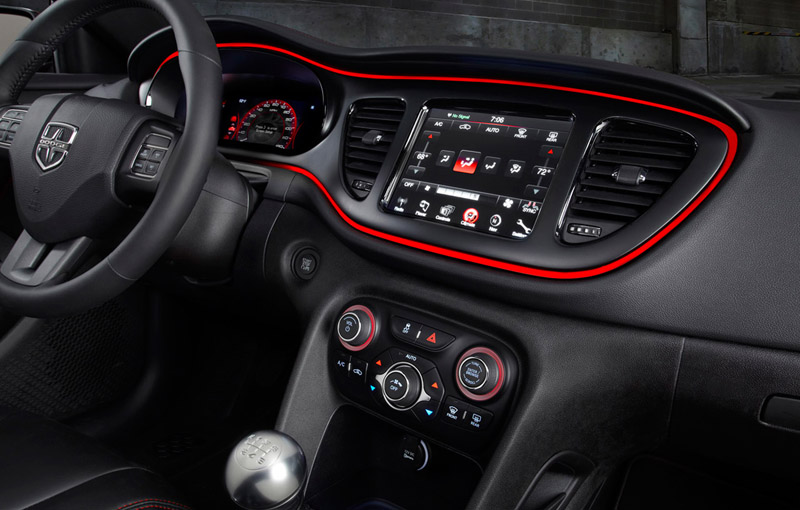 Interiorul a facut si el un mare pas inainte in viitor pentru Dodge, foarte probabil cu ajutor considerabil din partea grupului Fiat. La prima vedere nu se observa asemanari evidente cu plansa de bord a lui Giulietta, tema sportiva exprimata de exterior fiind continuata in mod fidel de formele interiorului. Calitatea generala nu poate fi evaluata din poze, dar este clar ca vechile materiale plastice folosite de Dodge pentru Caliber si Compass au fost date uitarii.