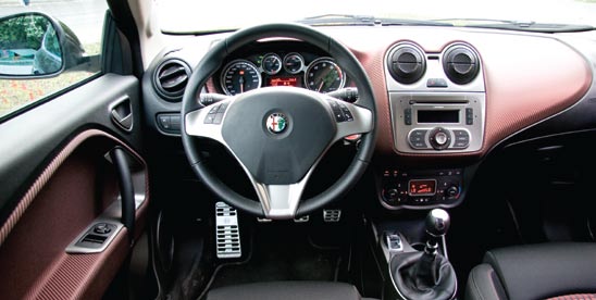 Echipat cu pneuri Pirelli PZero (215/40 R18), Mito poate aborda virajele cu viteze impresionante. Suspensia nu este atât de rigidă precum ar dori unii dintre noi, dar partea bună este că nu crează dureri de spate. După câteva zile în care consideri că perechea ta (a se citi Alfa MiTo) este perfectă, începi să descoperi unele „neajunsuri“. Din fericire, poți trăi cu ele fără să ai dureri de cap. Schimbătorul de viteze are o cursă cam lungă, dar este suficient de precis încât să nu-ți dea motive să te plângi de el. Conducând sportiv am apreciat stabilitatea, felul în care motorul „trage în ture“ și frânele ușor dozabile. Singurul neajuns vine din partea direcției. Atunci când mașina este condusă la limită, direcția este mult prea asistată pentru a comunica ce se întâmplă cu roțile. Având în vedere prețul de achiție, Alfa nu se adresează celor aflați strict în căutarea performanțelor dinamice, un concurent eligibil fiind Mini Cooper. Sperăm ca versiunea GTA a lui MiTo (230 CP) să aibă un sistem de direcție mai comunicativ. În seara primei zile a testului, încântat de felul în care se comportă Mito, am uitat că plecasem de acasă cu o destinație precisă. După ce am întârziat un sfert de oră, am răspuns grăbit la telefon spunând: „Dragă, vin în 5 minute!“.