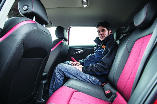 Rularea pe drumuri naționale este o plăcere din toate punctele de vedere. În prima linie – direcția incisivă și extrem de comunicativă, frânele de primă clasă și suspensia setată sportiv. În plan secund – sistemul ESP calibrat excepțional, care nu sacrifică nicio secundă de distracție, ci supervizează din umbră stilul de conducere. Traducerea sună astfel: mașina are calități dinamice native atât de avansate, încât șoferul se simte de parcă arconduce un kart înălțat. Iar înălțimea nu împietează deloc asupra ținutei de drum, care se menține suverană pe traseele virajate. O parte din merit aparține platformei modulare MQB folosită de Q2. La curbele închise abordate în forță, prima care pierde aderența este fața, urmată de puntea semi independentă spate. Procesul se desfășoară însă extrem de predictibil, iar șoferul este în permanent control asupra mașinii. Deși îl controlează atent, sistemele electronice nu par a interveni în proces, pentru că în niciun moment nu se simte acest lucru. Senzația este extrem de distractivă, dar perfect controlată. Se poate chiar și mai bine: modelele de top pot fi echipate cu suspensie spate multilink și tracțiune integrală, fapt care adaugă un mic plus de aderență. Dar Q2 nu se simte bine numai pe viraje, ci și pe autostradă. Treapta a șaptea a transmisiei asigură un regim relaxat, cu 2.500 rpm la 130 km/h. Rezultatul este un confort acustic bun, fără zgomote de la motor, însă consumul este doar mediu: 7,2 l/100 km.