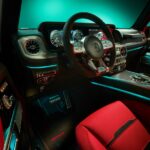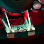 G63 Edition 55 primește jante de 22 inch în nuanța gri mat, iar o serie de detalii exterioare sunt finisate acum în negru lucios. La interior, modelul special primește o tapițerie cu două nuanțe (roșu și negru) și logo-ul aniversar 55 AMG vizibil pe diverse elemente de la volan la covorașe și praguri.