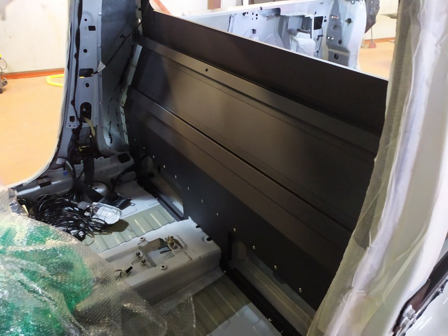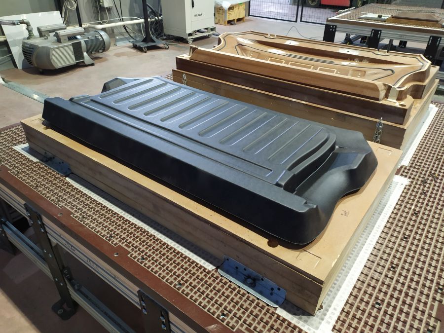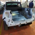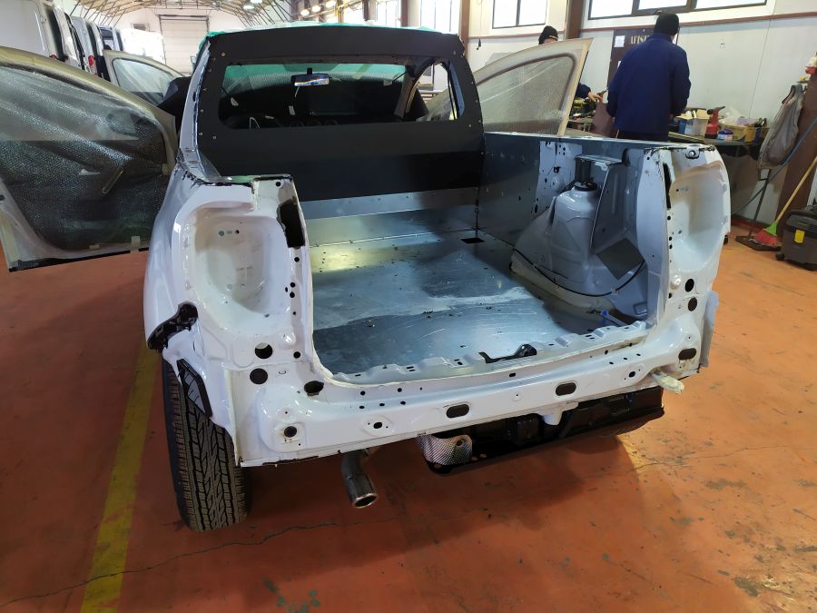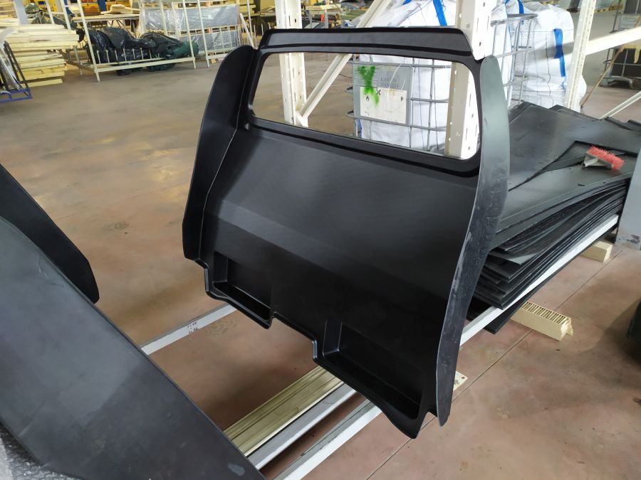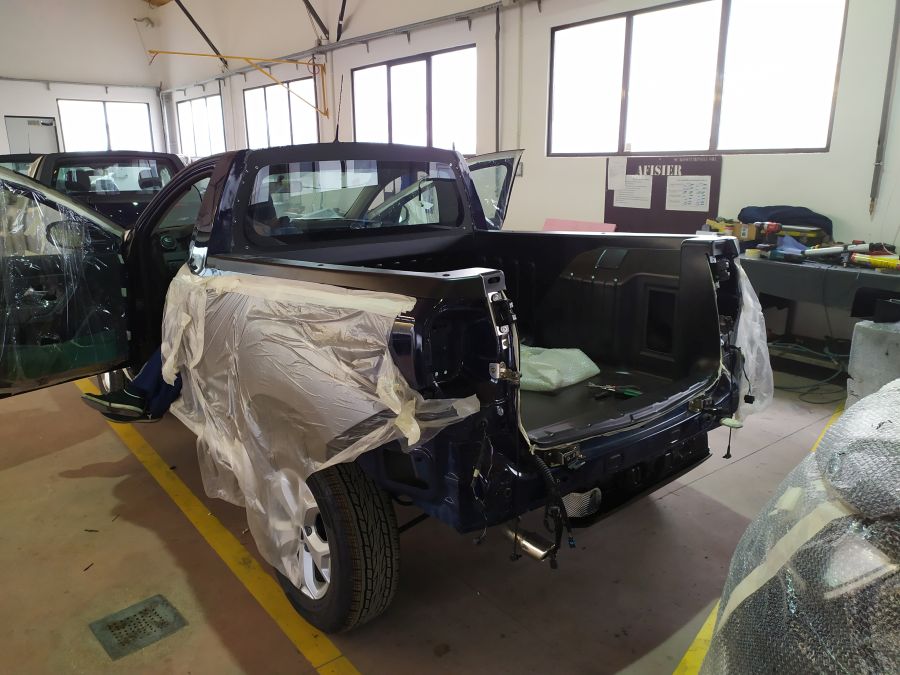 Peste structura metalica a benei este montată o protecție de benă (bed liner) din ABS forte, după care se asamblează toate ornamentele din plastic, realizate prin termoformare pe o mașină specială. Decuparea și prelucrarea acestor ornamente se realizează cu un robot Kuka cu 7 axe, de ultima generație.