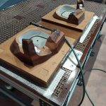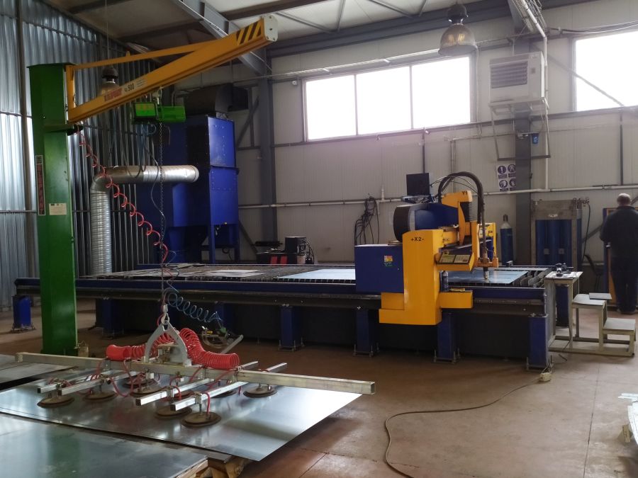 Panoul de separare este vopsit în câmp electrostatic, iar barele rectangulare care formează structura trunghiulara suplimentară de rigidizare sunt debitate cu o mașină cu laser care poate tăia spațial și profile inchise.