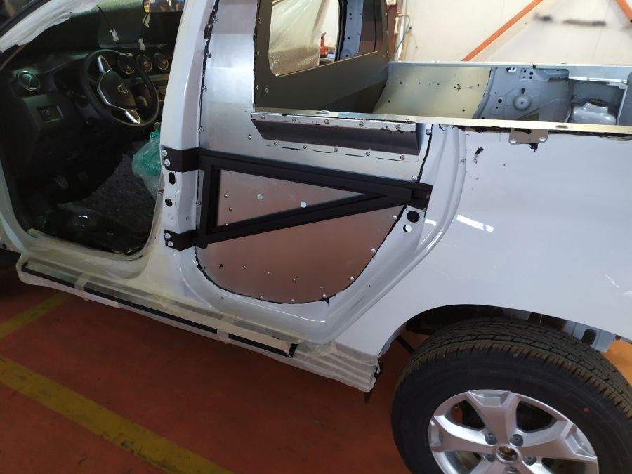 Acest panou, împreuna cu structura de profile ambutisate, montate în triunghi în zona unde la Duster se afla ușile spate, formează o structură rigidă datorită căreia caroseria lui Duster Pick-up se simte mai inchegată și mai rigidă decat cea a SUV-ului Duster. Solutia de rigidizare suplimentară este o mică inovație Romturingia.