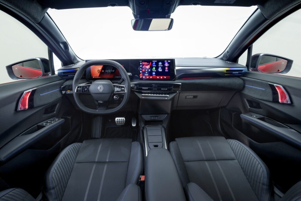 Habitaclul marchează un salt calitativ vizibil. Planșa de bord este orientată către șofer, iluminarea ambientală dispune de 48 de combinații cromatice, iar materialele textile îmbracă fețele de uși și planșa de bord încă de la echiparea de bază. O bună parte din materialele prezente la interior sunt produse din elemente reciclate. Totodată, clio devine primul model din segment care oferă suport nativ Google, prin sistemul multimedia OpenR Link afișat pe două ecrane de 10,1 inchi, cu actualizări software over-the-air. În mare parte, spațiul interior rămâne printre cele mai generoase din segment, ajutat fiind și de ampatamentul mai mare cu 8 milimetri. În cazul versiunilor termice, portbagajul are un volum de 391 de litri.