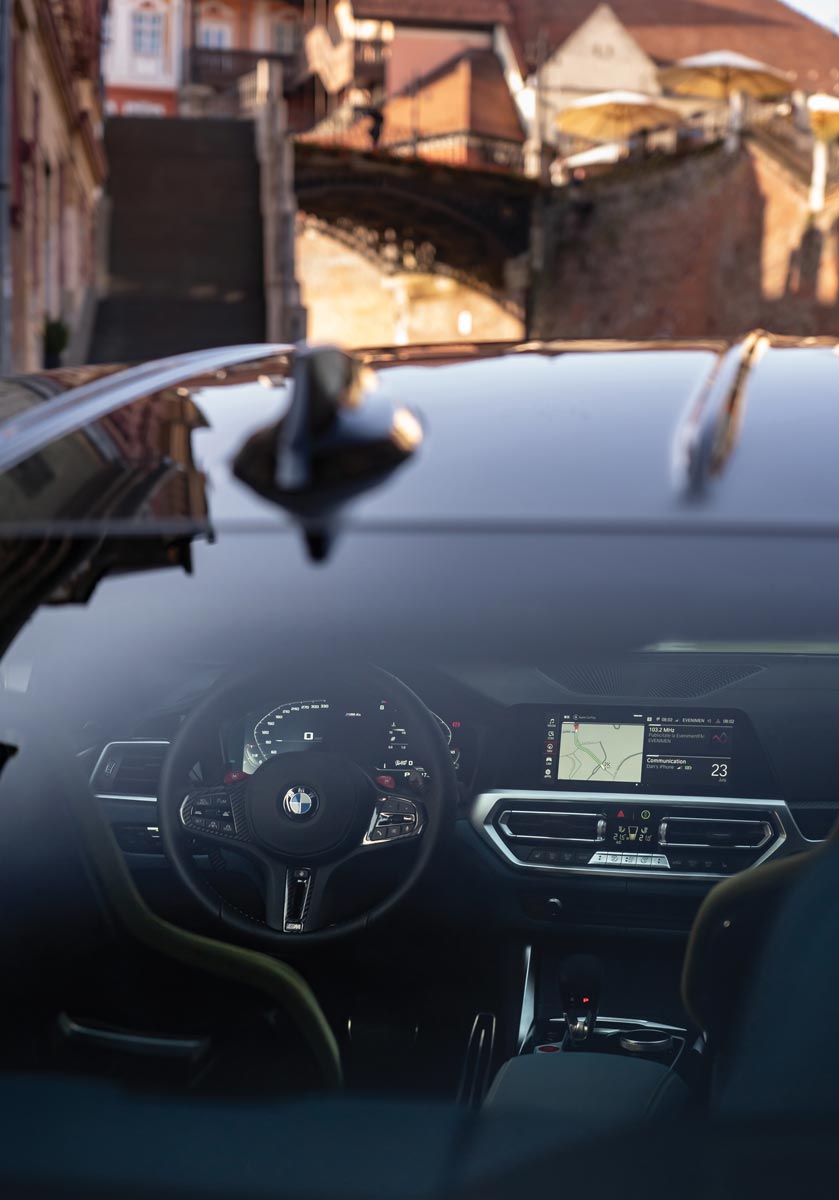 Sibiu. Regrupare la hotel urmată de răspândirea fiecărei echipe în căutarea luminii perfecte și a peisajului ideal. O nebunie în care zece BMW-uri au împânzit, într-o zi de vineri, orașul și împrejurimile-i liniștite. Pentru echipa noastră a fost o dezamăgire cruntă. Am vrut să fotografiem M4 Competition în fața a două picturi street art, dar ne-am lovit de atitudinea comunistă a paznicilor și directorului Bazei hipice Sibiu, care, în 2022, în orașul care a fost capitala culturală a Europei acum 15 ani, ne-a cerut să ne întoarcem peste două zile, cu o cerere scrisă, fără să specifice dacă dosarul ar trebui să fie cu șină sau plic. Jalnic, mai ales că nici nu trebuia să intrăm decât 10 metri în spatele porții.
