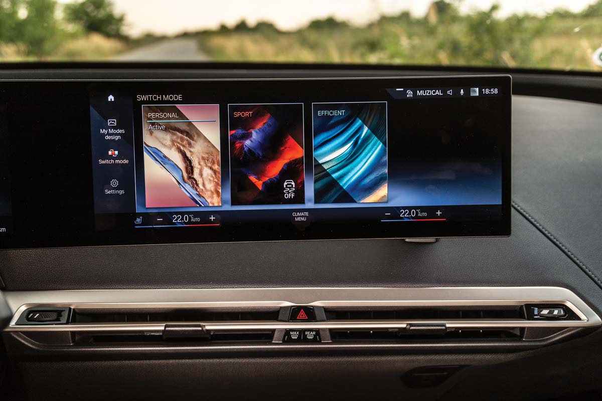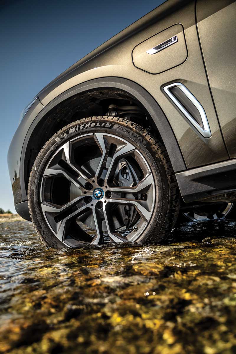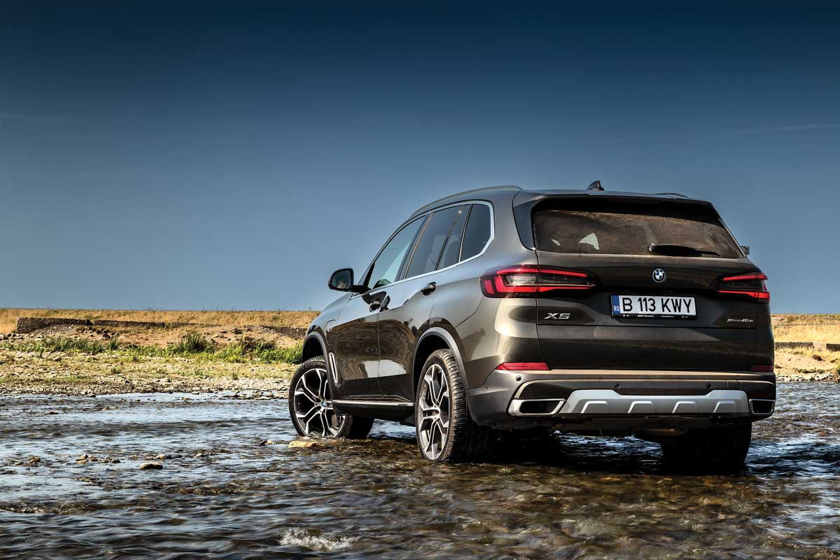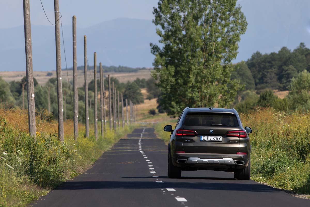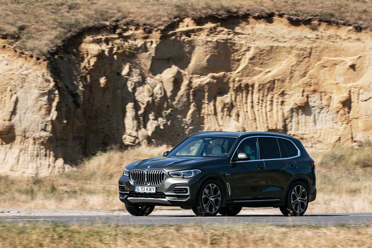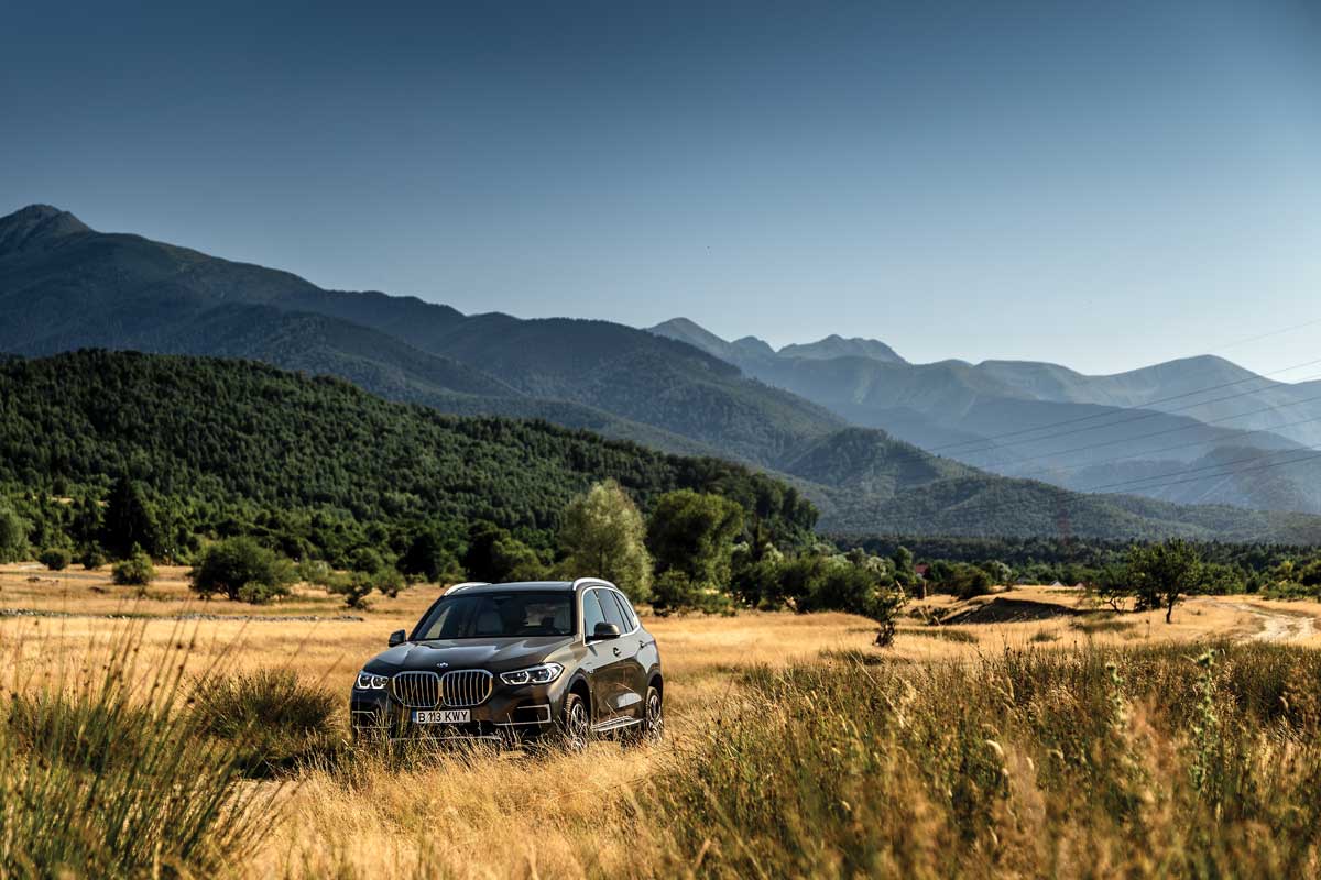 Eu m-am limitat la „superputerile“ camerei telefonului, apoi am schimbat iX-ul M60 cu X5-ul xDrive45e. L-am simțit din prima mai ușor, dar e clar că are o setare mai împinsă spre confort. Ruliul pe viraje este mai accentuat, iar denivelările sunt mai fin înghițite de roțile cu jante de 21 de inchi. Am la dispoziție doar 600 Nm (rumoare printre cititori), deci mașina accelerează mai progresiv, mai lent. Dar sunetul motorului cu șase cilindri în linie e mai visceral decât al oricăror boxe. Îl simți mai viu, ai o experiență mai personală cu el, îți este mai aproape de suflet. Să spunem că, dacă ar fi oameni, iX ar fi un finlandez, iar X5, un italian.
