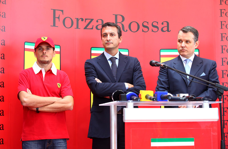 La lansare au participat Dl Mario Cospito, Ambasadorul Republicii Italiene la Bucuresti, Dl Ion Bazac, Președintele Forza Rossa, pilotul oficial Ferrari Giancarlo Fisichella precum și membri din managementul Ferrari în frunte cu Dl Enrico Galliera, Senior Vice President Commercial & Marketing.