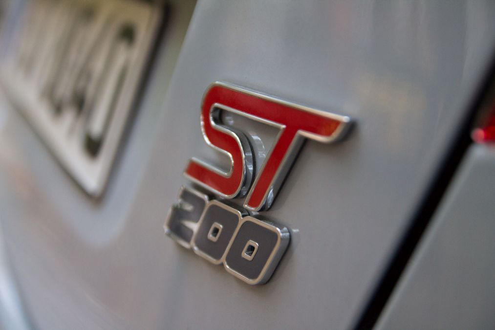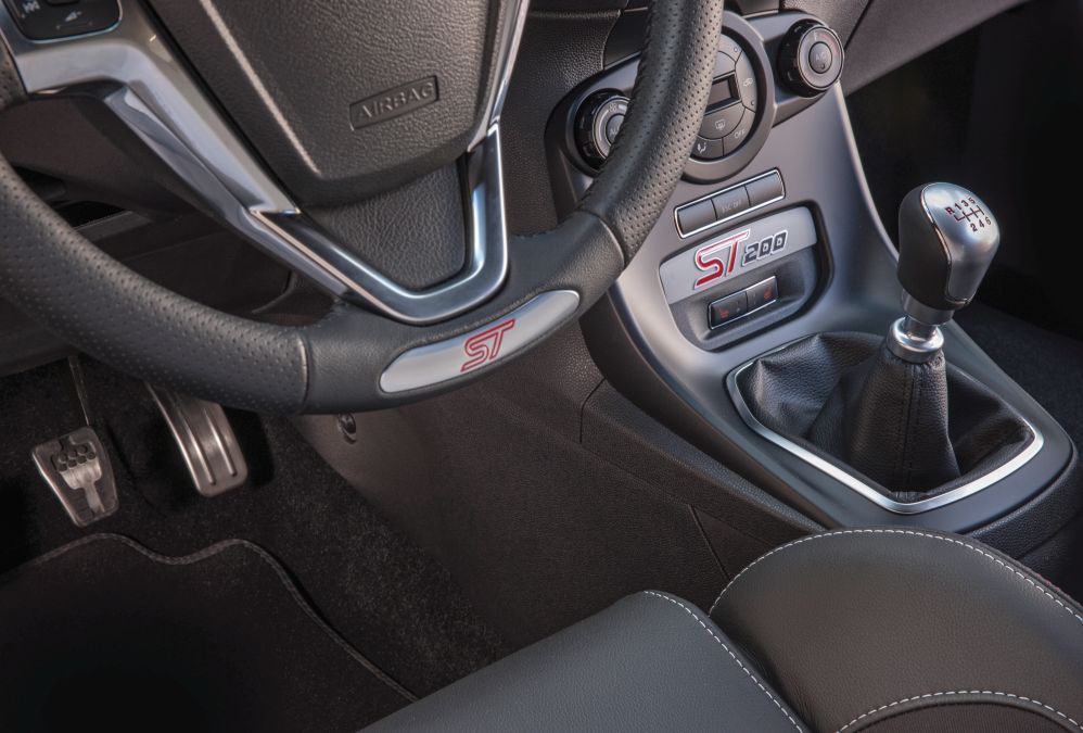 Povestea începe în secunda în care zărești pentru prima oară mașina. Culoarea Storm Grey, unica variantă disponibilă pentru caroseria Fiestei ST200, dă de bănuit oricui că nu are de-a face cu un model comun. Ea este susținută de grila față cu elemente în formă de fagure, de barele de protecție cu prelungiri tipice variantelor sport, de jantele negre, cu diametru de 17 inch și de eleronul prelung, cu rol funcțional. Situația se păstrează și la interior, unde volanul, schimbătorul de viteze și pedalele sunt inscripționate cu sigla ST. În zona inferioară a consolei centrale se află o plăcuță cu aceleași inscripții, iar pe prag, la deschiderea portierelor, sigla luminează cu roșu. Habitaclul este însă în cea mai mare parte negru, de la plastice la tapițerie și plafon, fapt care-i va bucura pe conservatori, dar nu-i va entuziasma pe tineri.