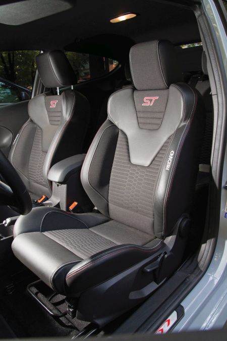 La fel de impresionant precum motorul este trenul de rulare reglat sport, care menține mașina pe viraje într-o manieră de go-kart. Suspensia, deși are cursa scurtă (am negociat ocazional viraje strânse și pe 3 roți), este foarte elastică și nu zdruncină. Compromisul între sportivitate și confort pe care l-au găsit inginerii de la Ford este încântător, iar atunci când în ecuație intră și scaunele Recaro, perfect profilate și foarte comode, avem imaginea unei mașini versatile, capabile deopotrivă să stabilească recorduri de circuit și să suporte fără nazuri o vizită la piață.