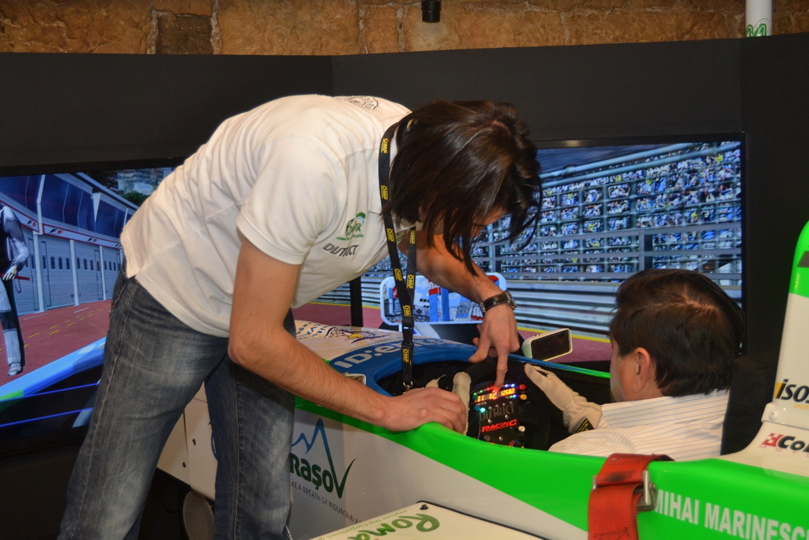 La prezentarea oficială printre cei care au urcat la volanul simulatorului și au ajuns din centrul Brașovului direct pe circuitul stradal de la Monte Carlo s-au aflat: Aristotel Căncescu – președintele Consiliului Județean Brașov, Dan Gîrtofan – campion național de raliuri, Marcel Butuza – locul 2 clasa Maraton Dakar 2012, pilot în Ferrari Challenge, Bogdan Barbu – câștigător al Cupei Dacia, Emanuel “Manu” Mihalache – pilot în Campionatul Național de Raliuri.Foto: Rudi Fekete