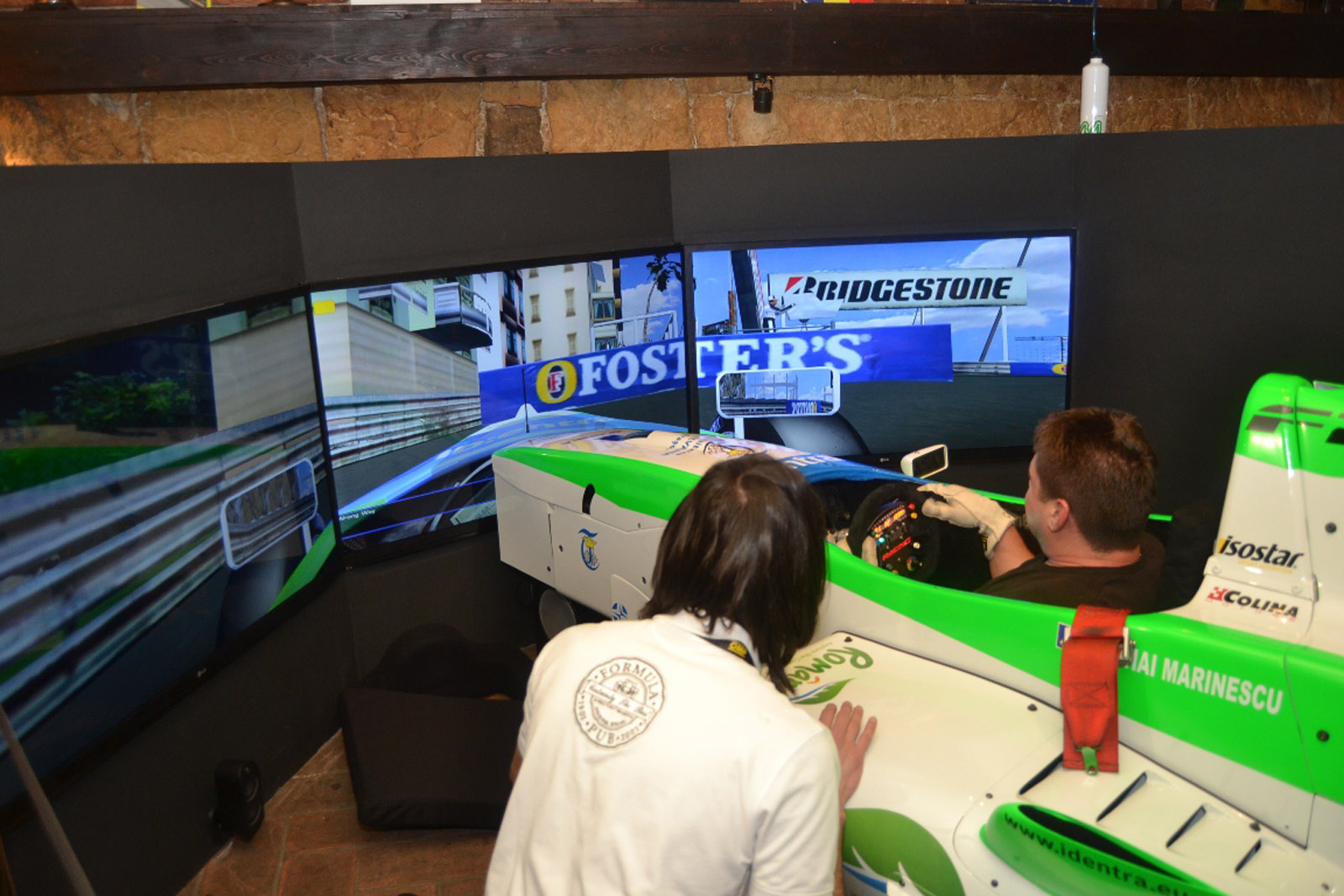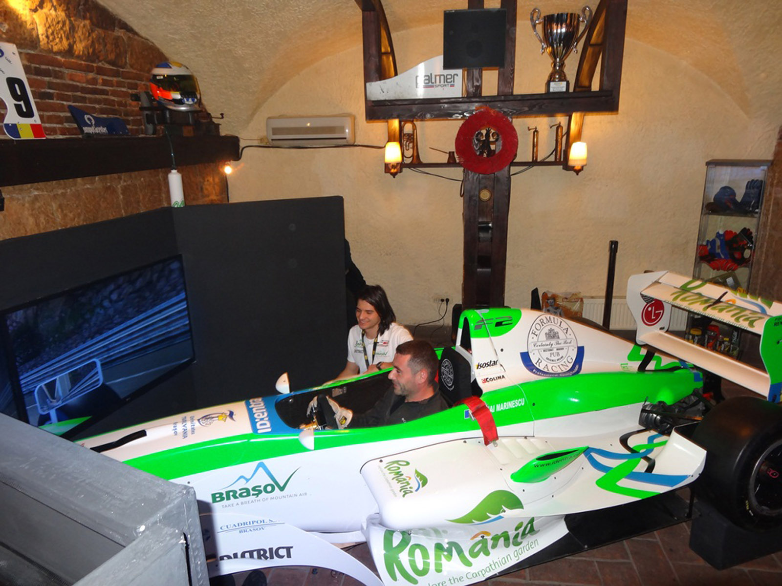 Formula Racing este un monopost de curse real, unul din cele utilizate de Mihai Marinescu în sezoanele trecute (Formula Renault 2.0), ale cărui comenzi – volan, pedale, schimbător – sunt preluate cu senzori într-un software specializat, care le transpune pe o pistă replicată 100% identic cu cea reală, imaginea regăsindu-se pe un ecran panoramic aflat în fața monopostului.
