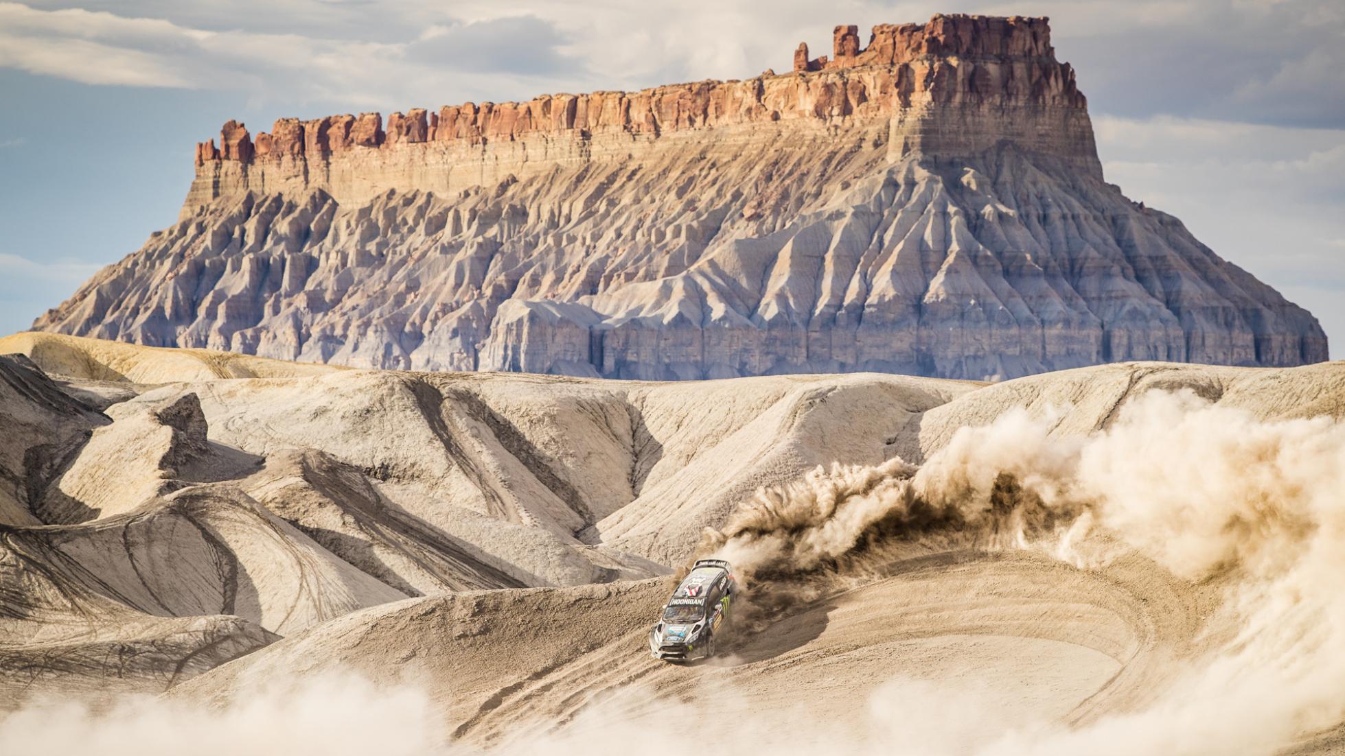 Mașina modificată, cu 600 de cai putere, urcă rampele aproape verticale cu nisip și pietre, apoi aleargă la vale cu toată viteza. Mașina plutește prin aer între dune și parcă se aude suspinând atunci când aterizează. La un moment dat, clipul îl arată pe Block apropiindu-se de marginea stâncii, o zonă care se numește “lama cuțitului”. Nu e deloc greu de înțeles de ce. Dacă nu își calcula corect distanța de frânare, Block ar fi putut să plonjeze sute de metri în gol.