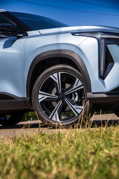 Silueta laterală este ușor înclinată spre spate, iar bandourile de plastic din partea inferioară a ușilor consolidează aspectul de SUV. Jantele standard pe echiparea GK sunt de 18 inchi, dar pe versiunile superioare, GF și GF+ Sport, veți primi un set de jante pe 19 inchi în două tonuri de culoare.