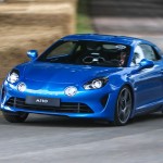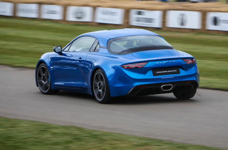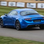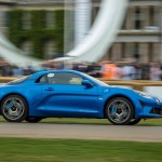 Un exemplar de serie vopsit în culoarea specifică Alpine, albastru electric, a defilat în fața publicului pe celebra urcare abruptă de pe domeniul lordului March, intitulată Hillclimb, condus de un pilot de încercări Renault Sport, care a părut să se simtă extrem de bine la volanul noului coupe cu motor central.