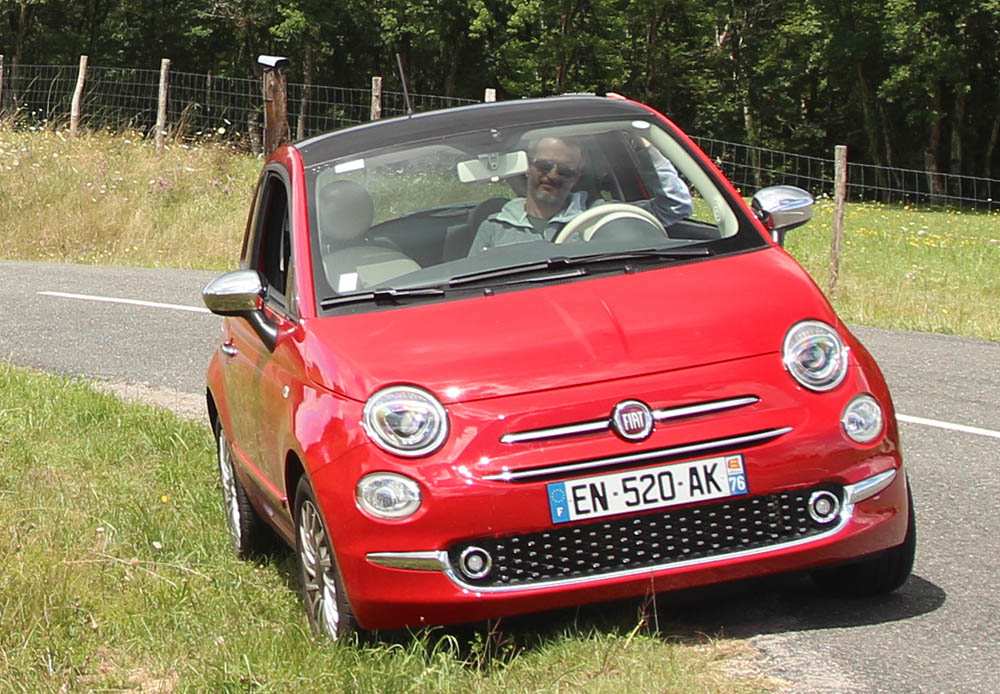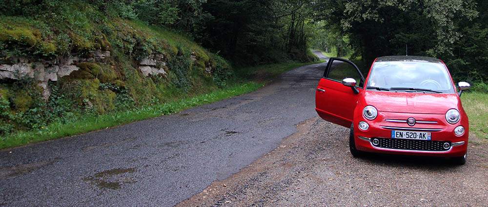 Noul Fiat 500 îşi arată adevăratele calități pe drumurile secundare. Dimensiunile avantajoase, combinate cu o suspensie suficient de rigidă pentru a aborda, în general, confortabil virajele fără a reduce drastic viteza dau maşinii un comportament dinamic de invidiat în clasa ei. Treptele de viteze 3 şi 4, prin «lungimea» lor, au transformat călătoriile peste colinele din Périgord într-o adevărată relaxare. Nu cred că exagerez dacă spun că, uneori, mi s-a întâmplat să accelerez sau să reduc viteza considerabil fără ca motorul să protesteze, parcă aveam o cutie de viteze automată. Cu atât mai plăcut cu cât majoritatea traseelor pe care le-am ales au fost prin parcuri naționale, acolo unde de multe ori până şi trecerea pe lângă un vehicul venind din sens opus devine problematică.