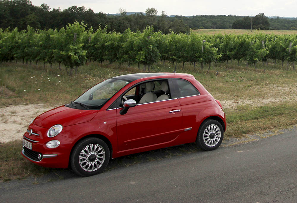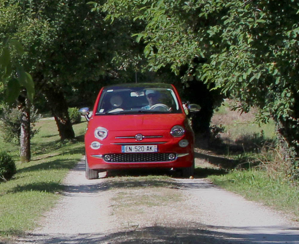 Așa am făcut și eu împreună cu consoarta de fiecare dată când am revenit pe Bătrânul Continent. Astfel, după ce ne-a lăsat avionul la Toulouse la mijlocul lunii iulie ne-am îmbarcat într-o mașină mică. Doamnele de la biroul de închirieri ne-au confirmat că, în general, americanii care și-au lăsat acasă vreun “pachebot” gen Cadillac Escalade se avântă într-o mașină mică. Un vehicul care lasă un soi de “green trace” și cu care este trendy să se pozeze în vacanță. Mie, unul, mi-era dor să conduc din nou o mașină cu trei pedale și cu care visam să mă strecor pe străduțele și drumurile secundare ale Franței spre regiunea Périgord. Am avut dintotdeauna o admirație aparte pentru tot ce au desenat italienii. Au ei ceva al lor și, când pun mâna pe un creion, îl folosesc la lucruri mult mai bune decât la scobit sub unghii. Acesta este și unul dintre motivele pentru care am vrut să merg cu un Fiat 500. O mașinuță plină de șarm, cu un aer retro dar totuși garnisit de dotări moderne. Desigur, nu aveam de gând să renunțăm la aer condiționat ! Timp de 15 zile ne-am plimbat prin regiunea Périgord cu un Fiat 500 echipat cu motorul de 1,2 litri și 69 CP.