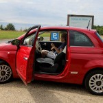 Comenzile esențiale sunt bine plasate iar reglajele scaunului şi ale volanului sunt ample. Scaun comod, chiar dacă puțin cam dur, dar cu spătar care oferă un suport mult peste medie. Aş îndrăzni să spun că pentru locurile din față Fiat este net superior concurenților săi Peugeot 108 şi Citroën C1, pe care le-am încercat pe trasee similare anul trecut. În vreme ce Peugeot 108 oferă un tablou de bord care parcă a fost comprimat de la o versiune anterioară de 305, cu câteva elemente de 308 care dau un rezultat anost şi fără personalitate, Fiat beneficiază de design-ul unei maşini legendare pe care a ştiut să-l adapteze şi să-l modernizeze la nivelul secolului XXI. Pentru locurile din spate însă, modelele franceze oferă, cu certitudine, mai mult spațiu pentru pasageri. Curbura caroseriilor lor oferă mai mult loc pentru cap iar lateralel sunt mai puțin înclinate. În plus, 108 şi C1 sunt oferite în varianta de bază cu 5 uşi, în loc de trei. Am încercat să mă aşez pe unul dintre locurile din spate, în Fiat 500. Odată scaunul din față revenit în poziția normală, genunchii mei nu mai aveau loc decât sub bărbie. Iar bărbia era destul de jos şi ea, că aveam plafonul lipit de freză. Avem deci de-a face cu o caroserie de două locuri (printre cele mai bune din categorie, dacă nu cele mai bune) plus doi copii. În aceeaşi ordine de idei, portbagajul nu are cum să fie incăpător, dar se compară mai mult decât onorabil cu al concurenței. Am fost mulțumit să constat că una dintre valizele noastre de vacanță a încăput fără efort. Iată-ne deci, jumătatea mea şi cu mine, în dilemă : o valiză «in» şi una «out». Plus doi rucsaci rotunjori de cărat oriunde, numai în portbagaj nu, că nu mai era loc. Am rezolvat problema româneşte : am pliat bancheta şi am obținut destul spațiu pentru tot calabalâcul. Cu maşina plină până la plafonieră am luat drumul autostrăzii, intrebându-mă, în sinea mea, cum o să-mi aduc aminte că pe continentul ăsta maşinile au trei pedale în loc de două şi că şoferilor le place să mestece în benzină tot timpul. Spre norocul meu, prima impresie statică de confort şi de ergonomie studiată atent a fost continuată de o alta, mai dinamică: Fiat e făcut parcă pentru plăcerea de a conduce. Ştiu, ştiu, o sa veniți să spuneți “uite-l şi p’ăsta, n-a văzut o maşină adevărată în viața lui şi i se pare că merge cu un Lamborghini”. Vă răspund cu modestie că ştiu să păstrez proporțiile. Nu încurc borcanele şi nici vitezele, pentru că levierul plasat la îndemână, pe consola centrală, este precis.