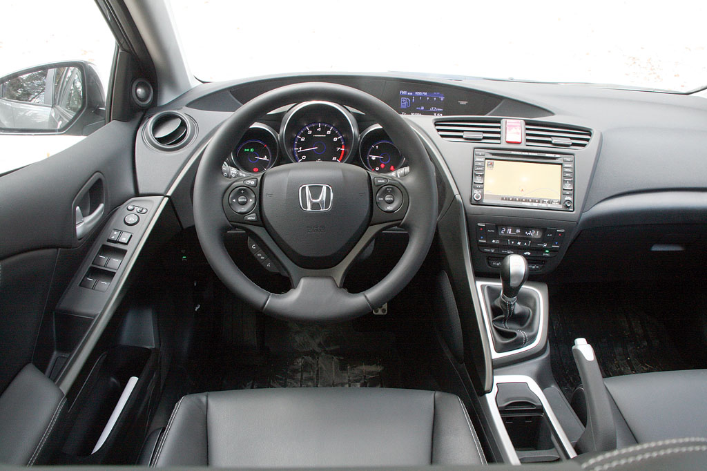 În interior procedura este similară: pe de o parte s-a păstrat abordarea tip cockpit cu majoritatea comenzilor dispuse în jurul șoferului, iar, pe altă parte, s-a optat pentru o consola centrală cu comenzi dispuse clasic. Mai exact, dacă în vechiul model climatizarea era controlată din dreapta volanului acum aceleași comenzi se regăsesc pe consolă, ca la orice compactă. Nu e chiar un motiv de supărare, dar este încă un exemplu că Honda a domolit avântul creator în favoarea unor soluții verificate. Calitatea interiorului a evoluat în direcția corectă cu materiale atent selecționate și îmbinări tipice pentru Honda, adică precise și aspectuoase. Similar a crescut și lista de dotări pentru care poți opta ce include, reglaj electric al suportului lateral pentru scaunul șoferului, un sistem de sunet hi-fi cu subwoofer integrat în portbagaj, plafon panoramic de dimensiuni mari, smart keyless entry&start etc.