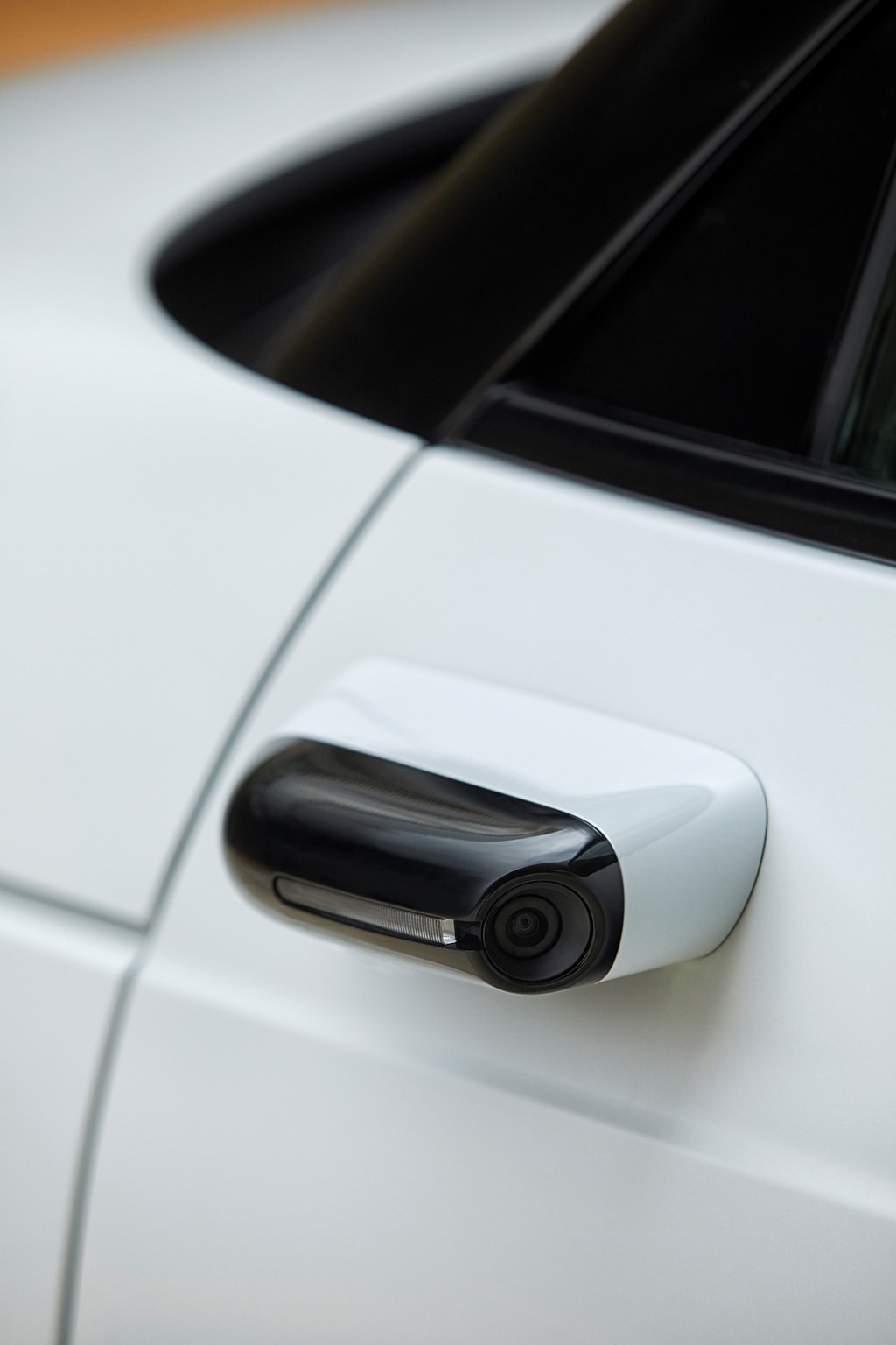 Honda e a renunțat complet la oglinzile laterale convenționale – înlocuite cu camere de înaltă rezoluție. Tabloul de bord este complet digital și are incluse nu mai puțin de cinci ecrane. Instrumentarul de bord digital are un display de 8,8 inch. Zona centrală este dominată de cele două ecrane de 12,3 inch, compatibile Apple CarPlay (wireless) și Android Auto. Camerele exterioare au două ecrane dedicate, de câte 6 inch.
