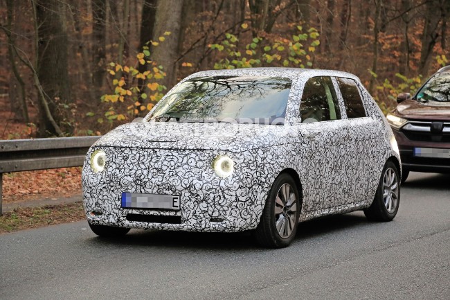 La ora actuală, nu există detalii referitoare la sistemul de propulsie al micuțului vehicul urban, iar camuflajul alb-negru nu lasă la vedere mai nimic. Observăm însă, că prototipul surprins în teste are o caroserie mai practică decât a conceptului, pentru că a primit portiere convenționale, care se deschid în aceeași direcție. Sunt șanse mari ca farurile LED rotunde să rămână pe poziție, la fel și accentele retro ale design-ului.