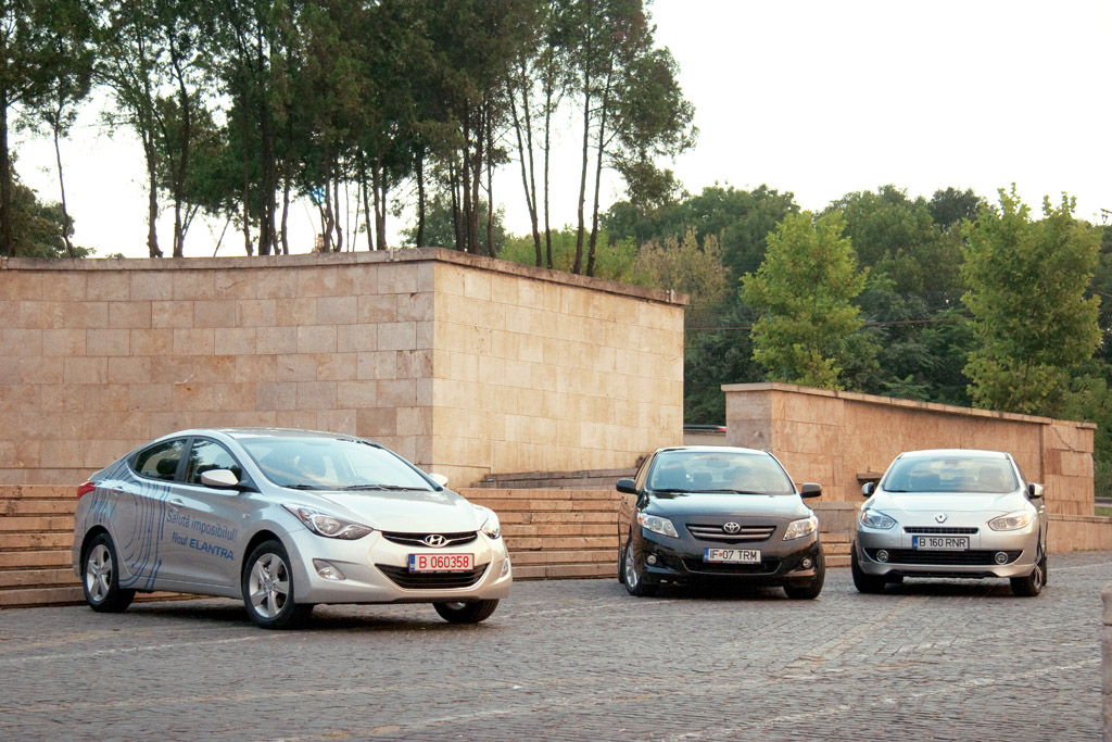 Hyundai Elantra este noul venit în segment, deci este modelul care aruncă mănușa către concurenții din testul de față. Impresionant la prima vedere grație noului limbaj de design adoptat de producătorul corean, Elantra va atrage cele mai multe priviri pe stradă. Corolla se află la polul opus din acest punct de vedere, o prezență discretă ce poate fi catalogată drept un model clasic în viață. Renault Fluence se situează undeva între cele două asiatice, tușa sportivă dată de kit-ul optic exterior al ediției Passion reprezentând un plus de imagine față de modelul standard.