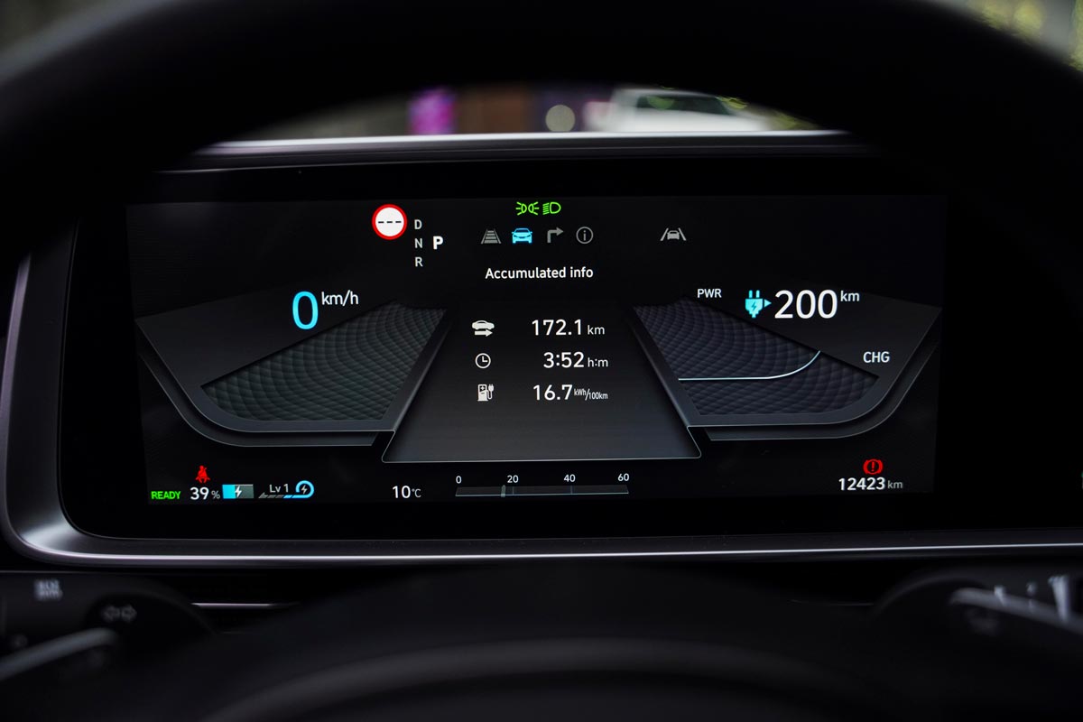 În primul rând, să-ți spun despre consum. Pe când niciun model n-a coborât sub 19,3 kWh/100 km, Ioniq 6 s-a mulțumit cu 16,3. Este rezultatul coeficientului aerodinamic remarcabil, combinat cu o eficiență fabuloasă a arhitecturii pe 800 V. Pe tura noastră, autonomia a fost de 454 km, depășită doar de Taycan (470 km), în timp ce celelalte modele n-au sărit de 400. Pur și simplu, coreeanul este ideal pentru călătoriile lungi!