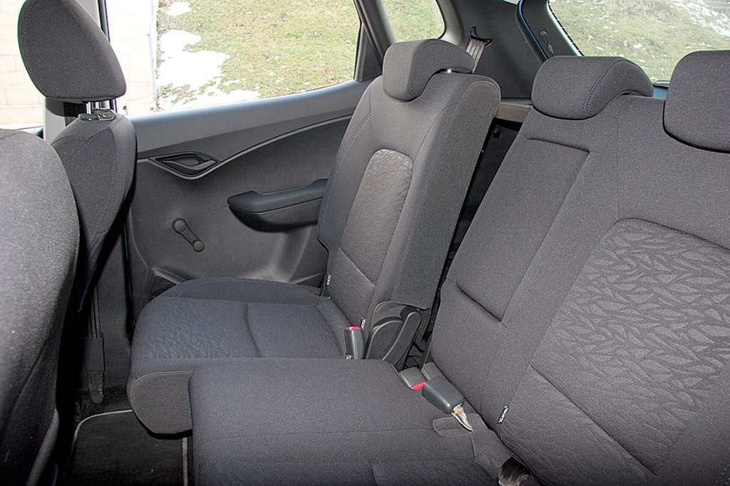 Habitaclul este spațios, pasagerii din față beneficiind de o poziție comodă în scaunele montate mai sus decât în automobilele compacte sau în cele cu trei volume. Și bancheta este montată mai sus, ca într-un amfiteatru, pentru a le permite pasagerilor (copiilor) să vizualizeze cât mai bine suprafața vitrată mare din față. Merită toate laudele capacitatea de modularitate pe care o oferă, pe lângă fracționarea proporționată 40/60 și posibilitatea de reglare individuală a unghiurilor de înclinare a celor două spătare, precum și posibilitatea de culisare a șezuturilor (sunt montate pe șine). Tot în acest sens amintim și de spațiile de depozitare numeroase, poziționate strategic și dimensionate corespunzător.