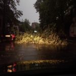 Douăzeci de minute au ținut ploaia torențială și vântul puternic. Rețeaua de canalizare nu a putut face față. Autoritățile au intervenit pentru degajarea copacilor căzuți de pe carosabil și pentru evacuarea apei din subsolul clădirilor și apelează la localnici pentru curățarea canalelor și rigolelor.