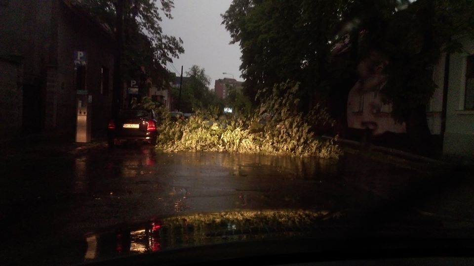 Douăzeci de minute au ținut ploaia torențială și vântul puternic. Rețeaua de canalizare nu a putut face față. Autoritățile au intervenit pentru degajarea copacilor căzuți de pe carosabil și pentru evacuarea apei din subsolul clădirilor și apelează la localnici pentru curățarea canalelor și rigolelor.