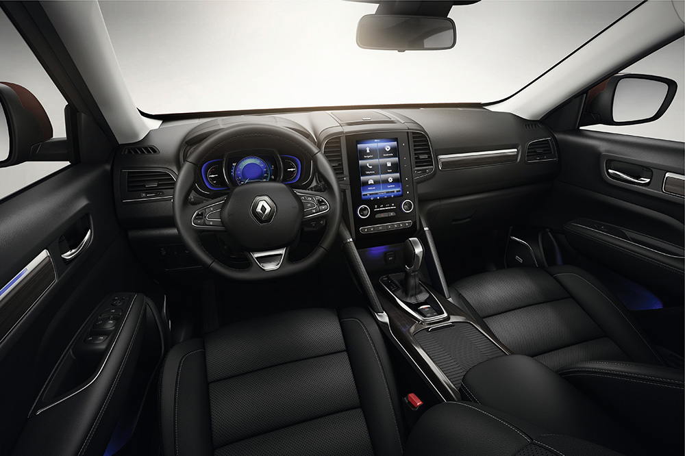 Șoferul stă cu 15 cm mai sus decât într-un sedan, fapt care-l plasează pe Koleos în zona împătimiților de SUV-uri mari, înalte și cu personalitate puternică. O altă dovadă a clasei pe care-o afișează este spațiul generos pentru genunchii pasagerilor de pe banchetă, cei 289 mm fiind referința în segment. Nu numai spațiul interior impresionează, ci și dotările care includ volan încălzit, sistem ultra-rapid de dezghețare a geamurilor, filtre pentru polen, praf și mirosuri neplăcute și noul sistem de infotainment R-Link 2.