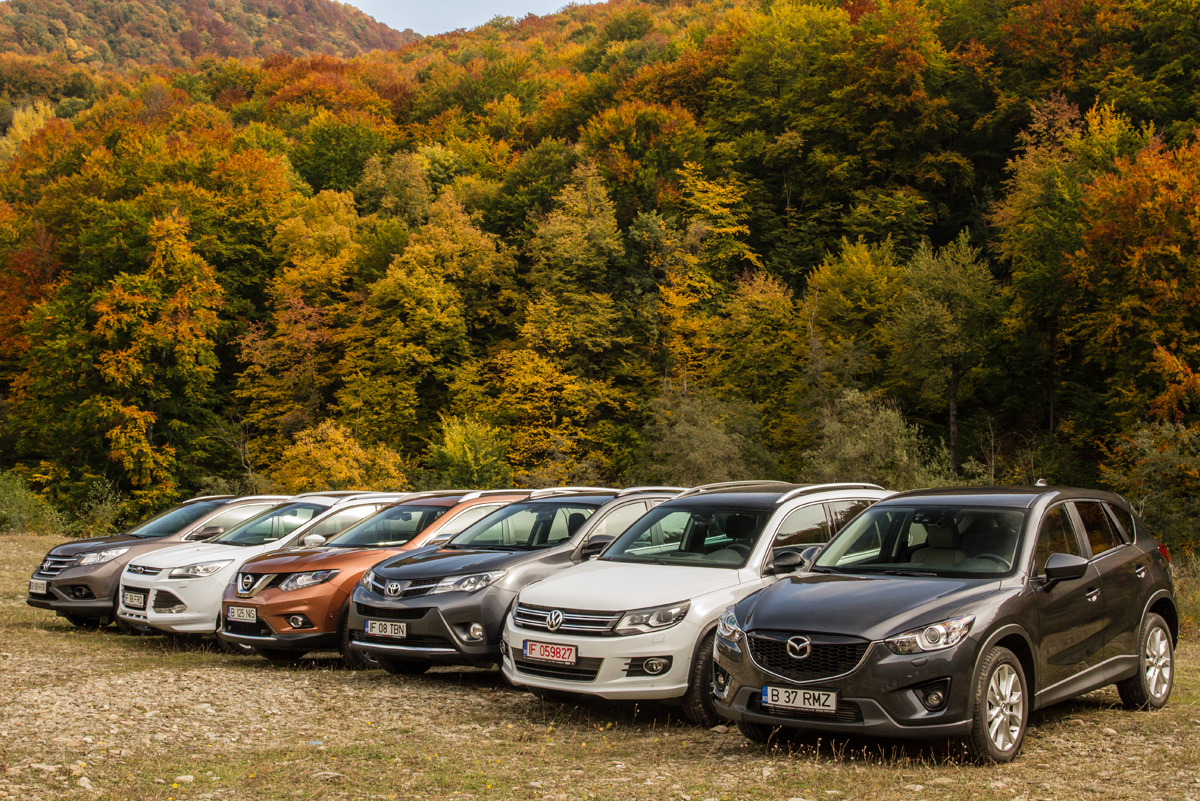 Mazda CX-5 4,5 steleMazda CX-5 oferă un bun compromis între agilitate și confort, are un motor rafinat, economic și puternic și o ergonomie corectă. Are un preț foarte bun și costuri de întreținere reduse. Interiorul este mai mic decât la unii rivali.VW Tiguan 4,5 steleUn SUV foarte manevrabil și confortabil în același timp cu o calitate de fabricație excelentă și o ergonomie ireproșabilă. Poziționarea de preț este corectă. Ca și Mazda, este ceva mai mic la interior și motorul este ușor gurmand.Ford Kuga 4,5 steleUn SUV de familie foarte spațios care se conduce incisiv ca un Focus dar este foarte confortabil în același timp. Motorul este rafinat și performant iar prețul atractiv cu programele Trade-In sau Rabla. Ergonomia consolei centrale este principala critică.