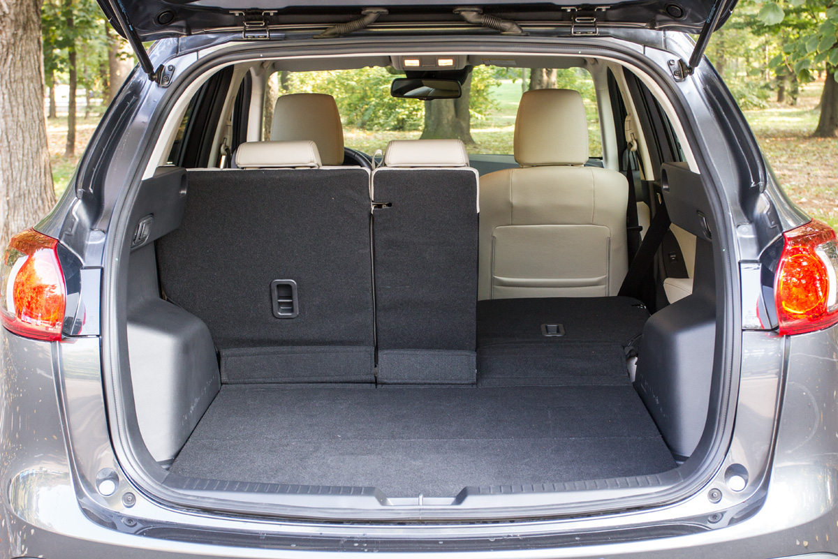 Spațiul interior în spate este mai mic decât la rivalii japonezi sau decât la Ford, dar totuși nu ne putem plânge de lipsă de spațiu. Bancheta spate se rabate în două moduri având pe lângă butonul clasic și o manetă în portbagaj, însă prin rabatere apare un mic prag la încărcare deși șezutul coboară inteligent la rabaterea spărtarului. În schimb, în spate se stă foarte bine. Unghiul între spătarul și șezutul banchetei spate este optim și nu am simțit lipsa unui spătar înclinabil sub diverse unghiuri. Mazda nu excelează însă la spațiile de depozitare, lipsind compartimentele în zona consolei centrale, iar cele din uși sunt destul de mici.