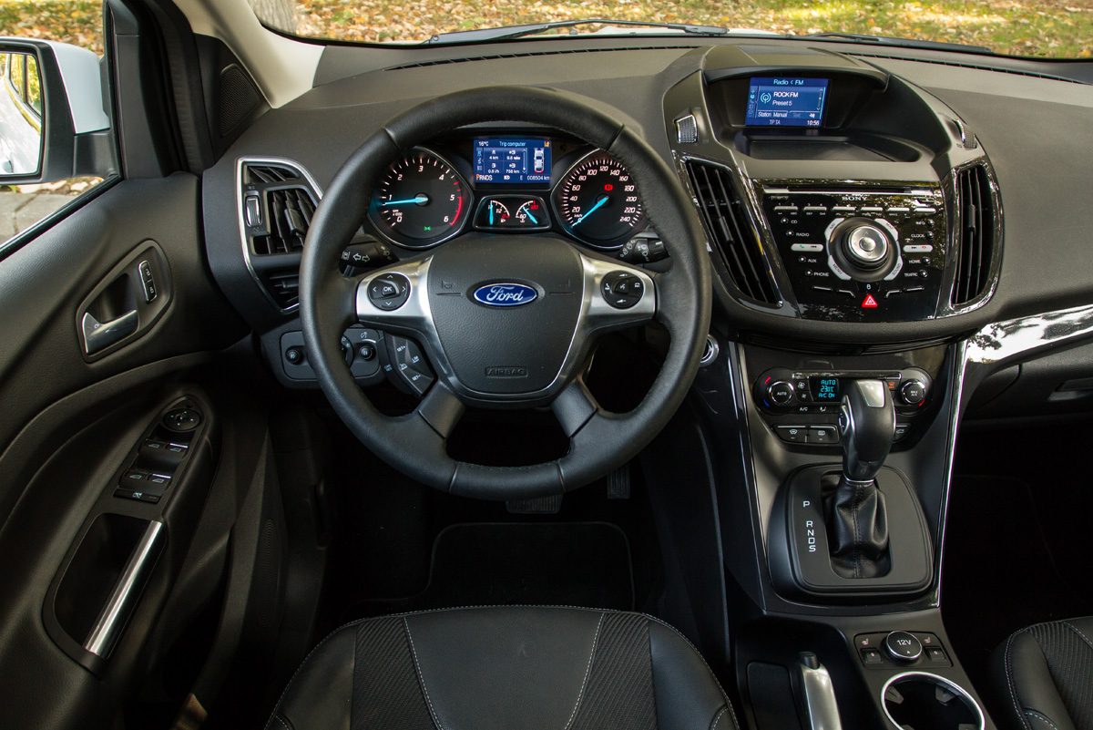 Consola centrală este de altfel principala critică la Kuga. Este masivă, butoanele sunt mici, displayul este mic și amplasat destul de departe de ochii șoferului, iar comenzile climatizării sunt ascunse în spatele schimbătorului. Spre deosebire de Mazda, Ford a integrat elegant comenzile sistemelor de asistență în centrala de comandă, ceea ce este un lucru bun, dar din păcate tot acolo a fost integrat și ESP-ul care nu poate fi decuplat rapid dintr-un buton. După ce am văzut faceliftul lui Focus cu noua consolă centrală, mutarea logică ar fi implementarea acesteia și la Kuga cu ocazia unui viitor facelift. O asemenea operațiune ar înlătura principala critică adusă actualei generații.