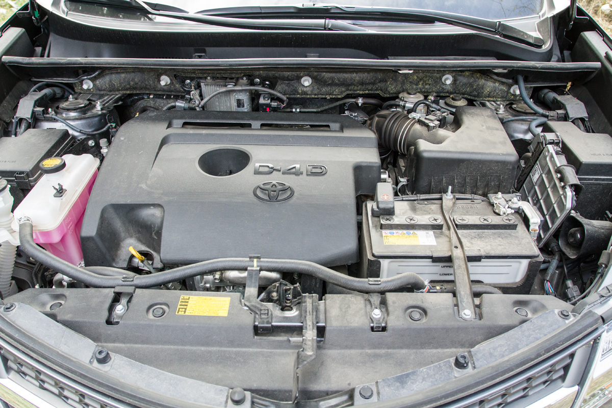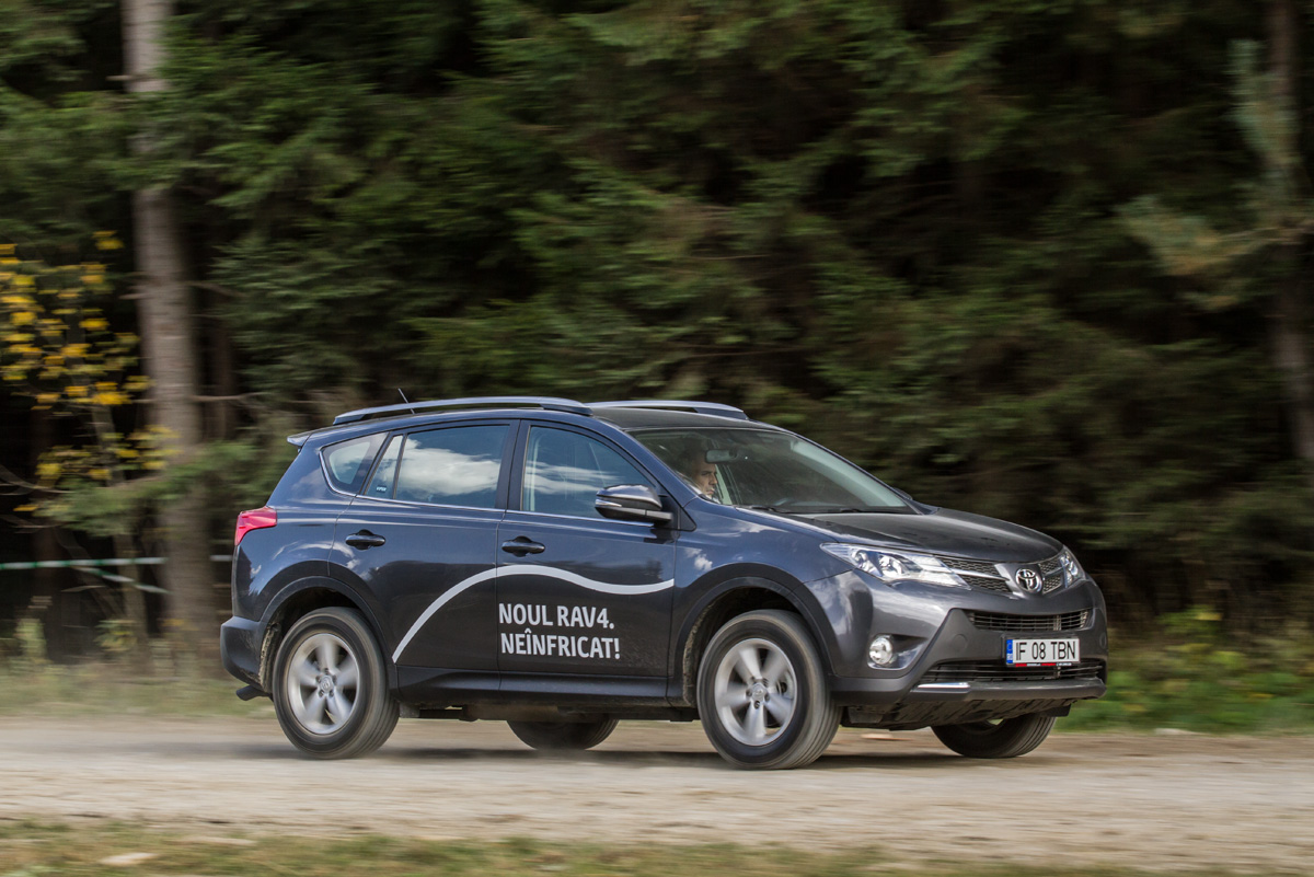 Prezent în test cu transmisia manuală, RAV4 are accelerații foarte bune, iar consumul oficial este printre cele mai scăzute, lucru care se confirmă și în practică. Însă la accelerații, motorul de 2,2 litri își trădează originea de diesel și mormăie la urcarea în ture. Alături de Nissan, Toyota este singura care oferă un diferențial central blocabil. Din păcate, RAV4 nu poate aborda terenuri foarte accidentate deoarece garda la sol de 160 mm este cea mai mică din test.
